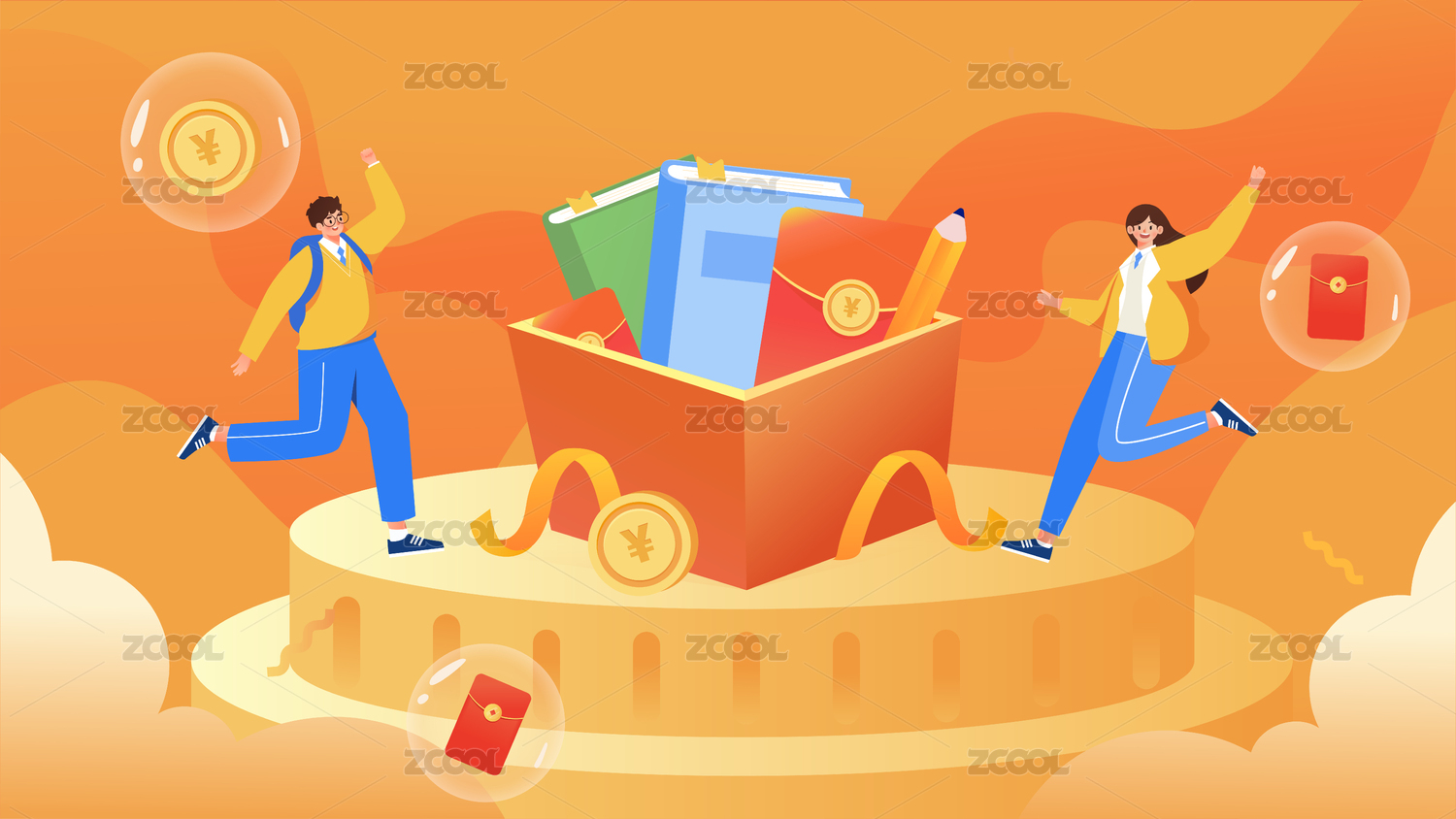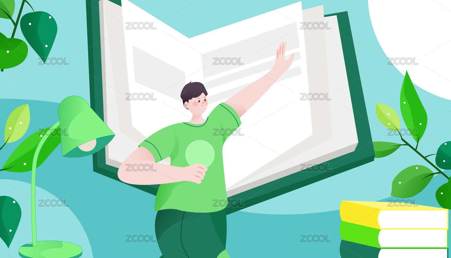 卡通在線教育課程學生青少年學習矢量背景插畫