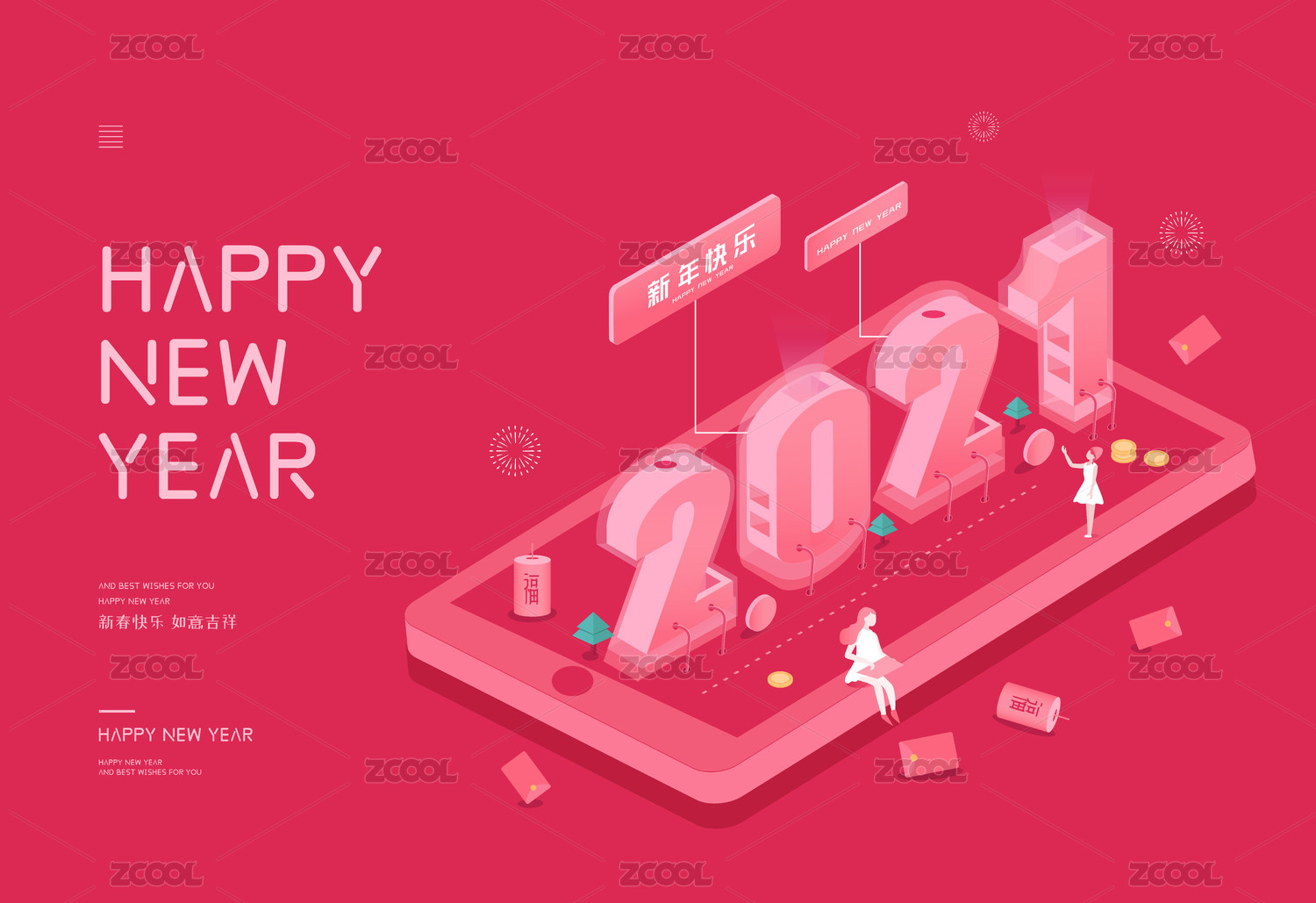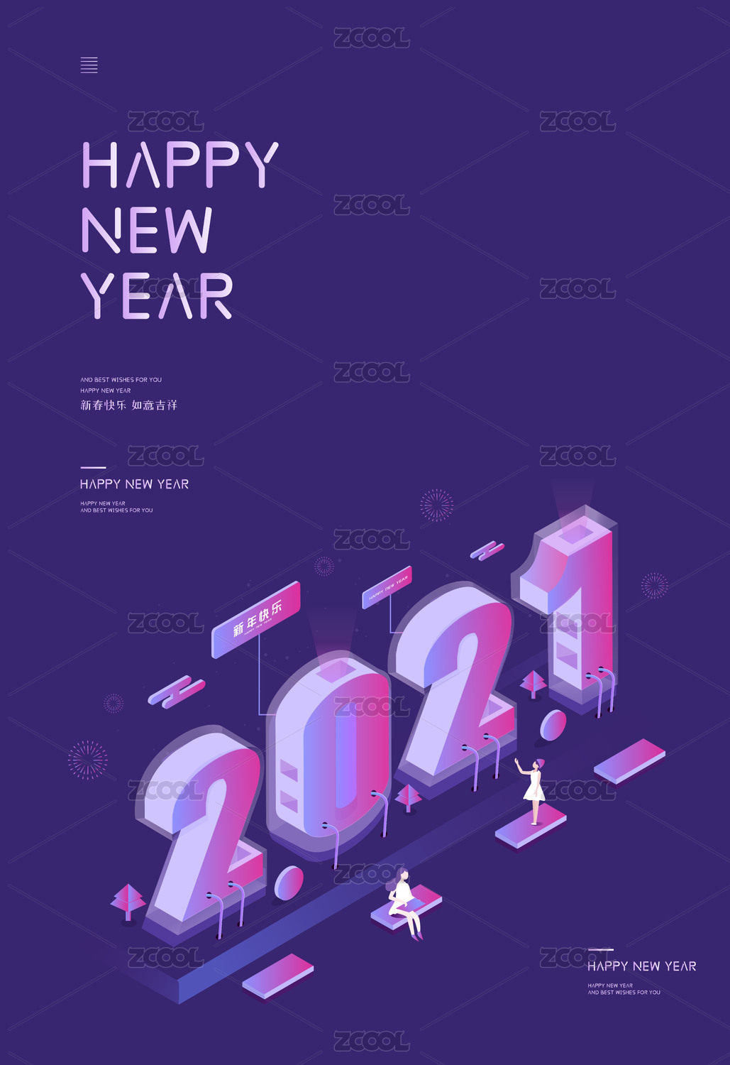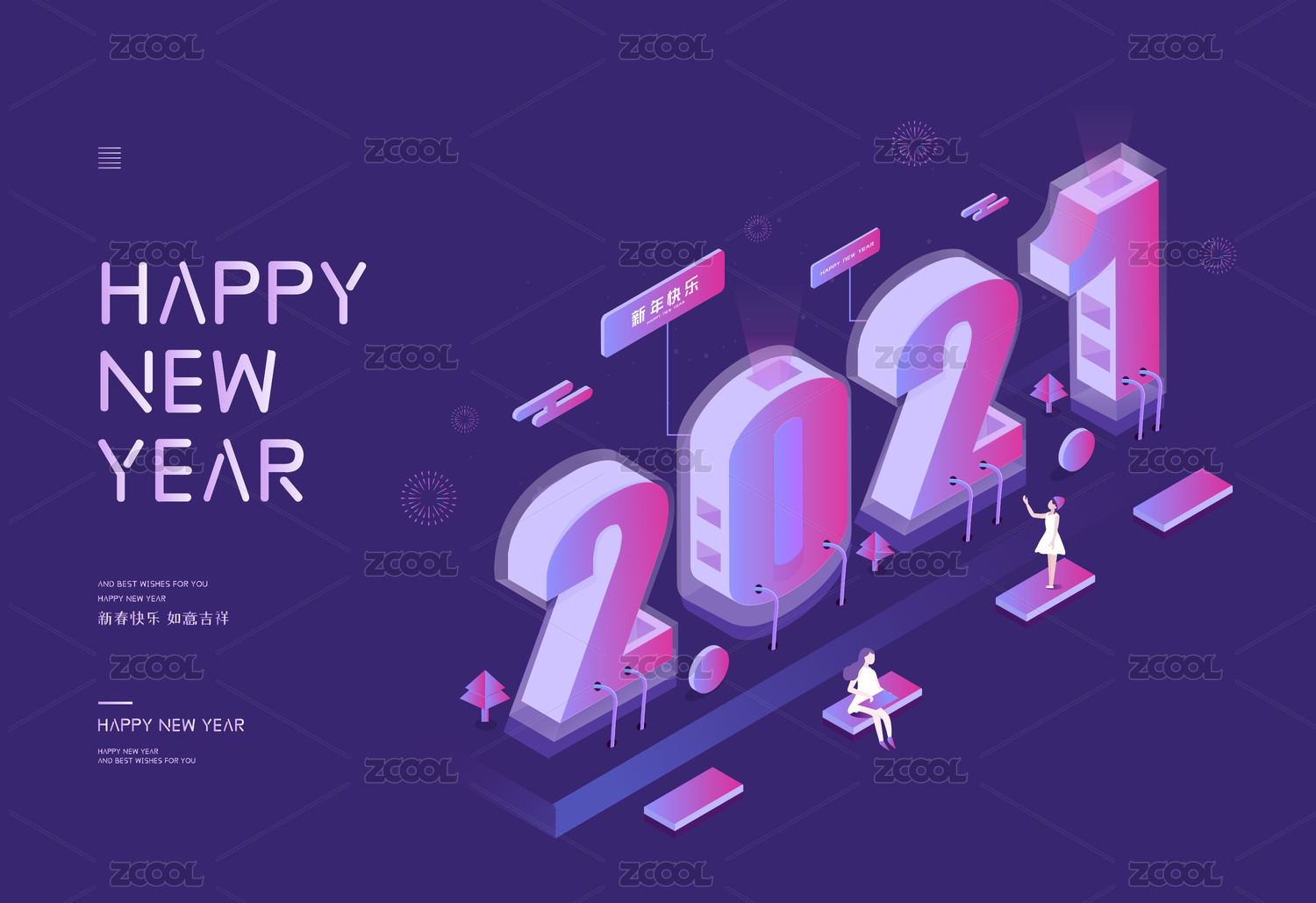2021數(shù)字2.5D牛年矢量插畫
