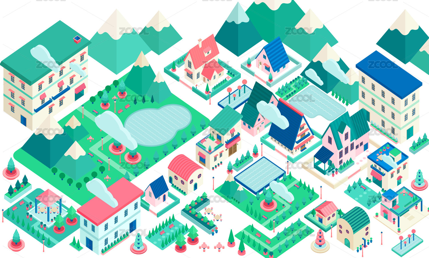 2.5D小清新建筑房屋小鎮(zhèn)