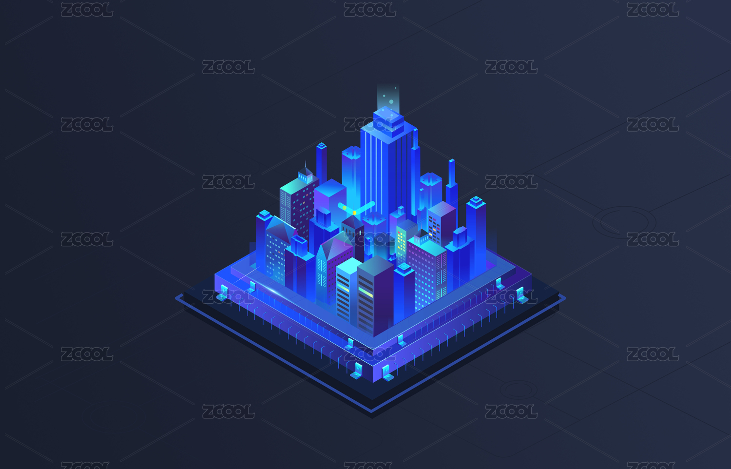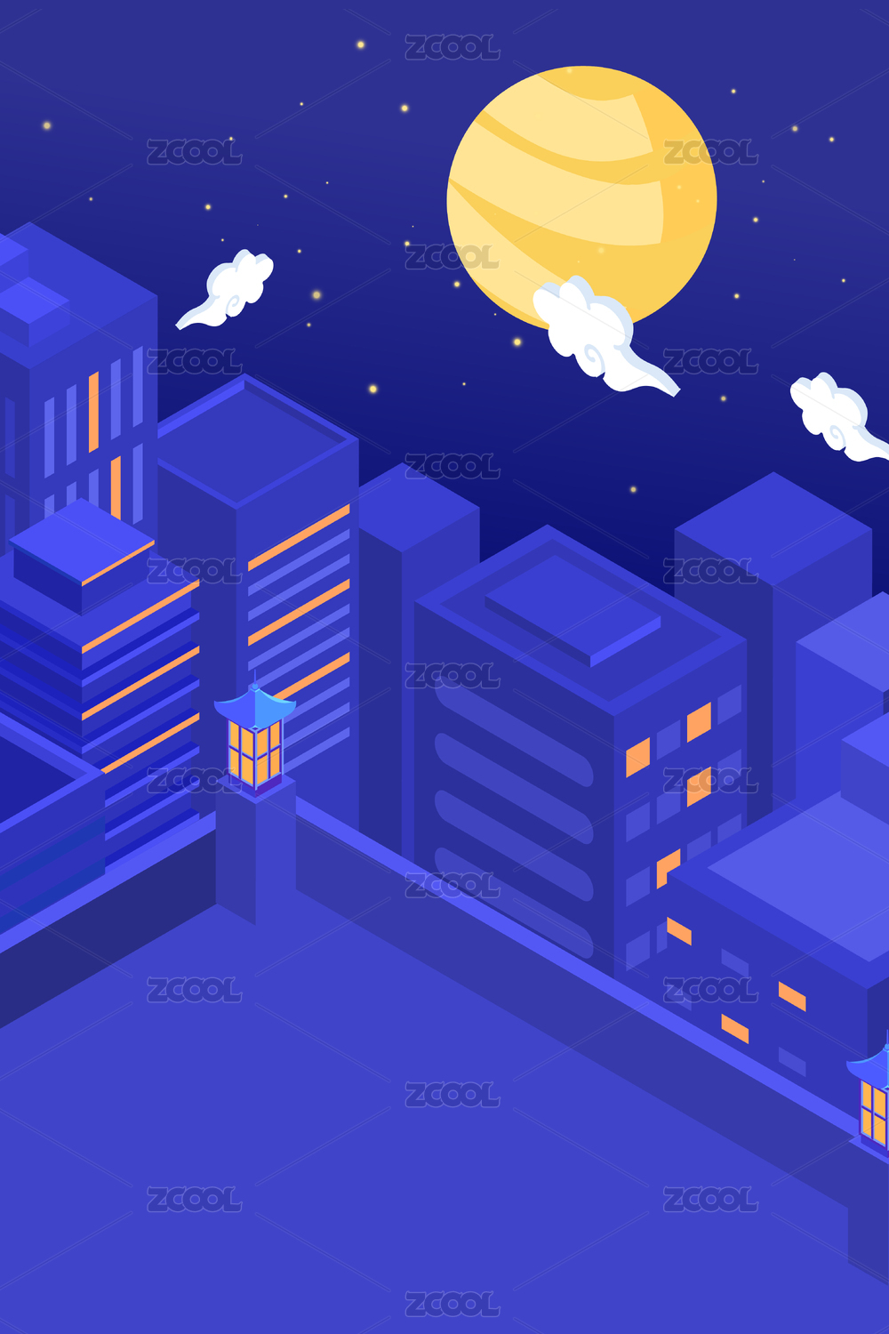2.5d城市夜景矢量插畫