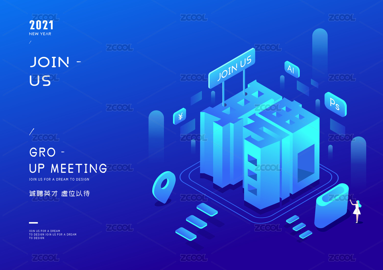 藍色科技感2.5D招聘矢量插畫