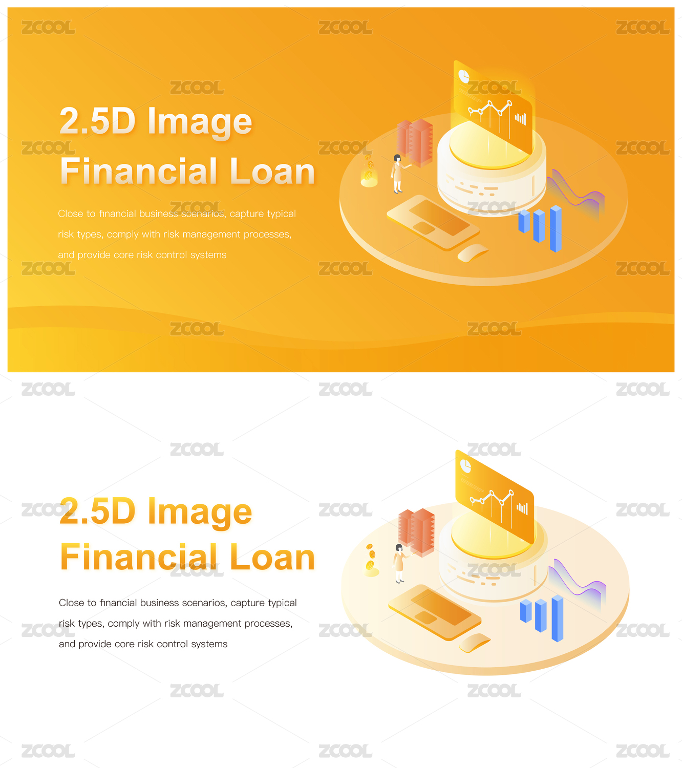 2.5D等距金融活動矢量插畫