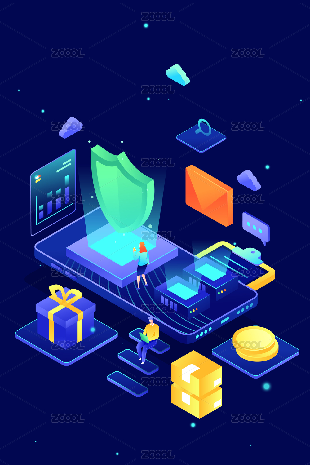 2.5d數(shù)據(jù)安全矢量插畫