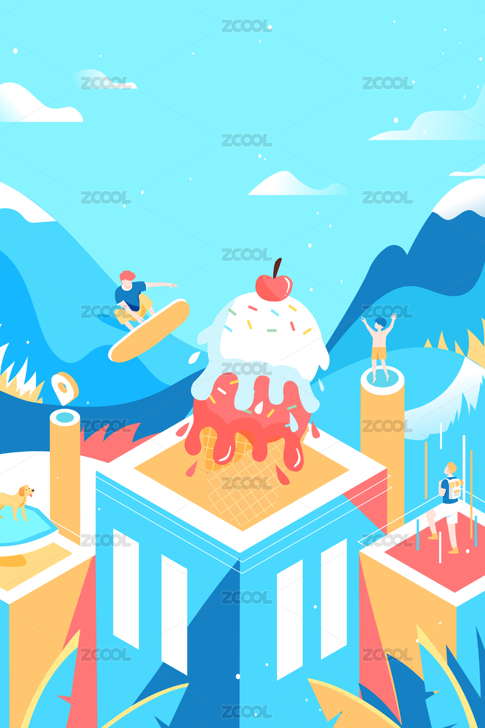 冰淇淋游樂場矢量插畫