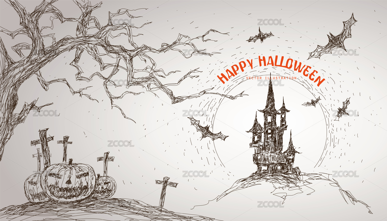 萬圣節(jié)卡通插畫場景