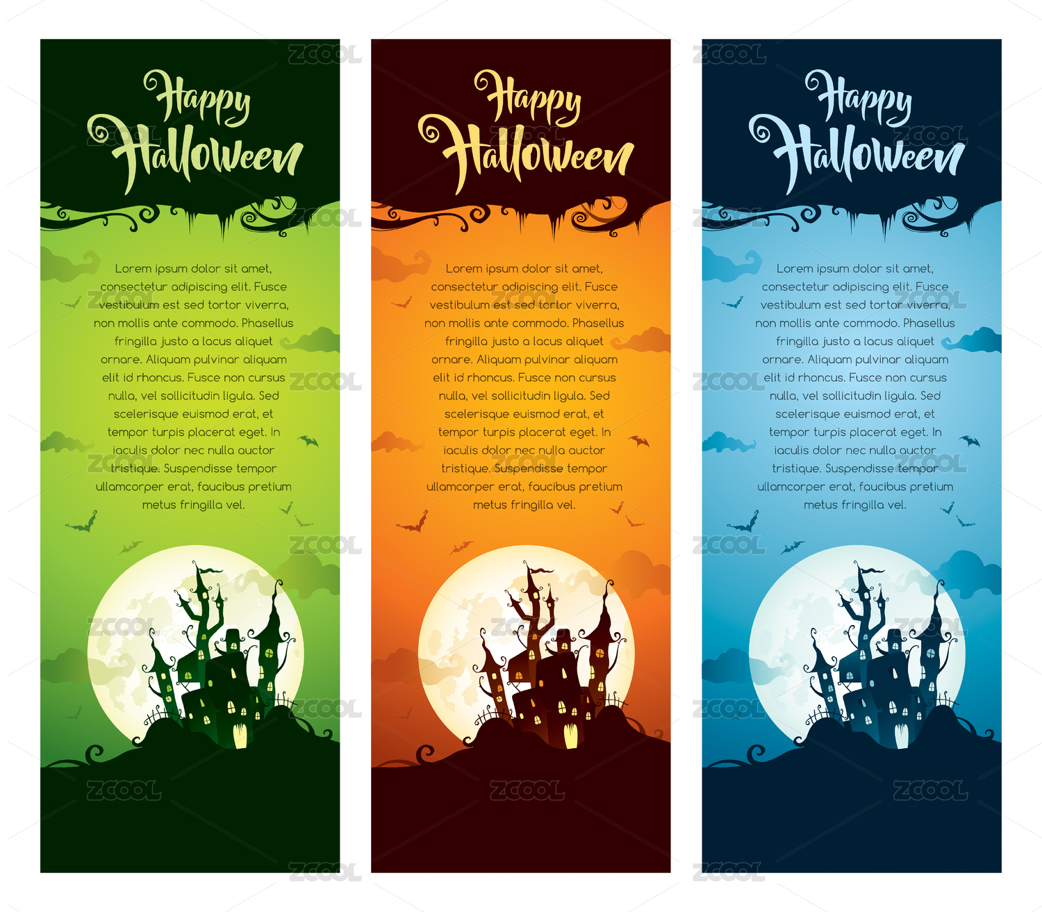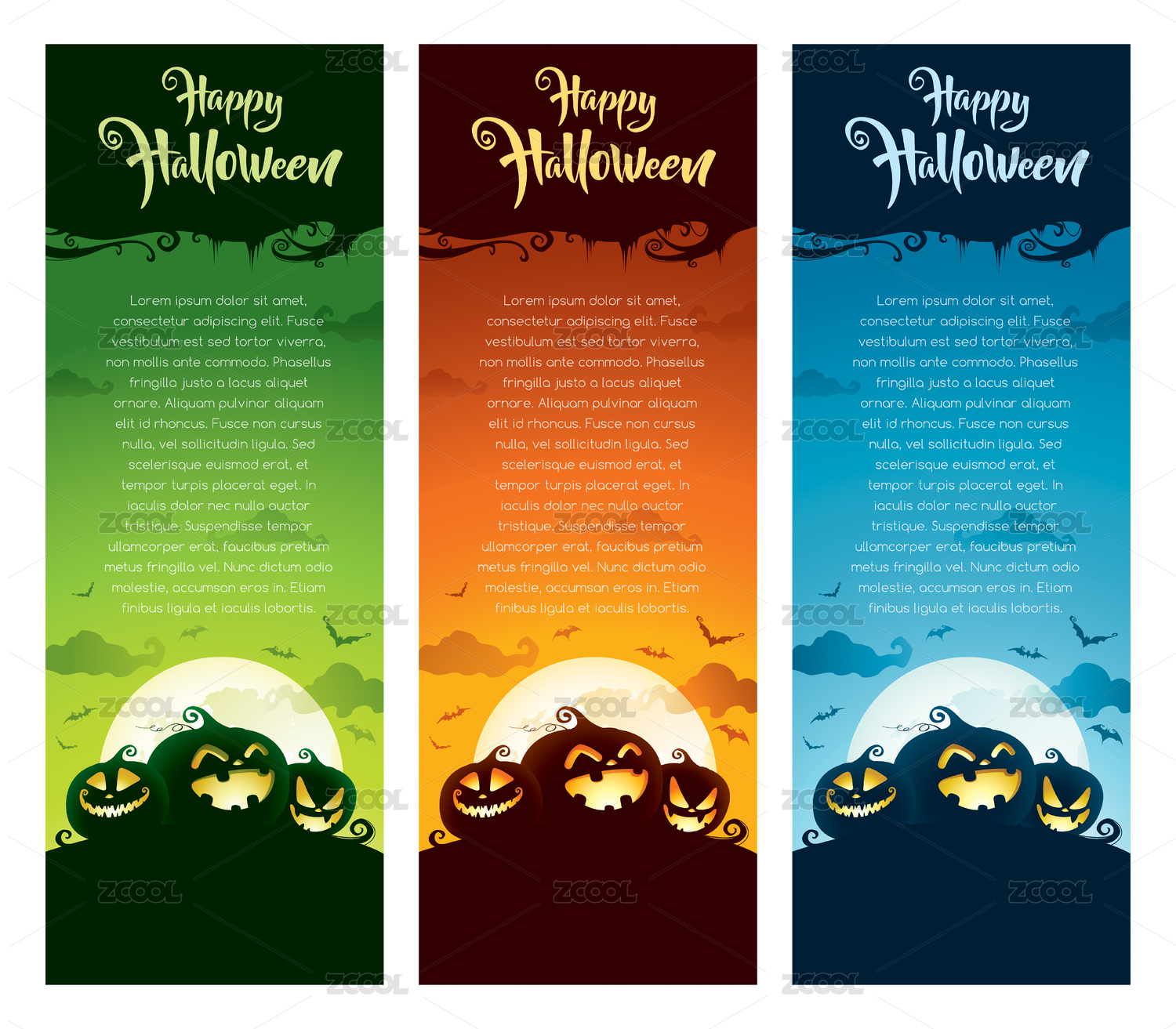萬圣節(jié)主題。垂直橫幅模版組。