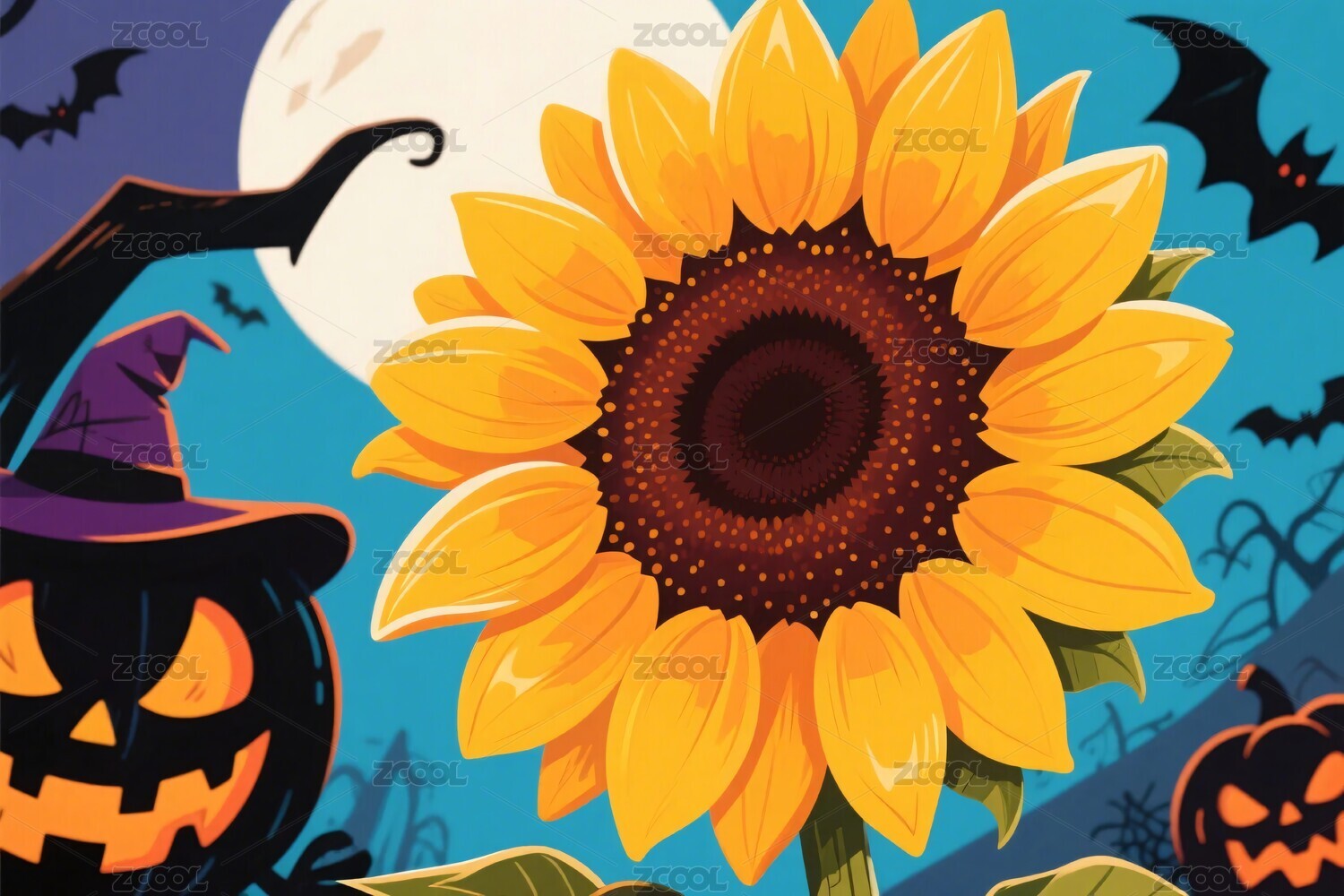 萬圣節(jié)主題向日葵插畫