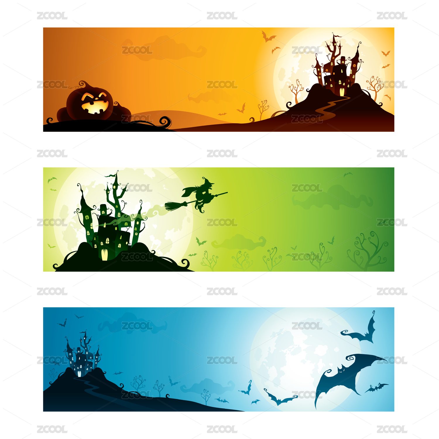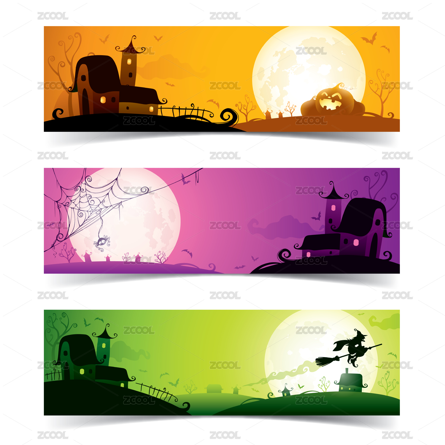 萬圣節(jié)主題。 橫幅模版組。