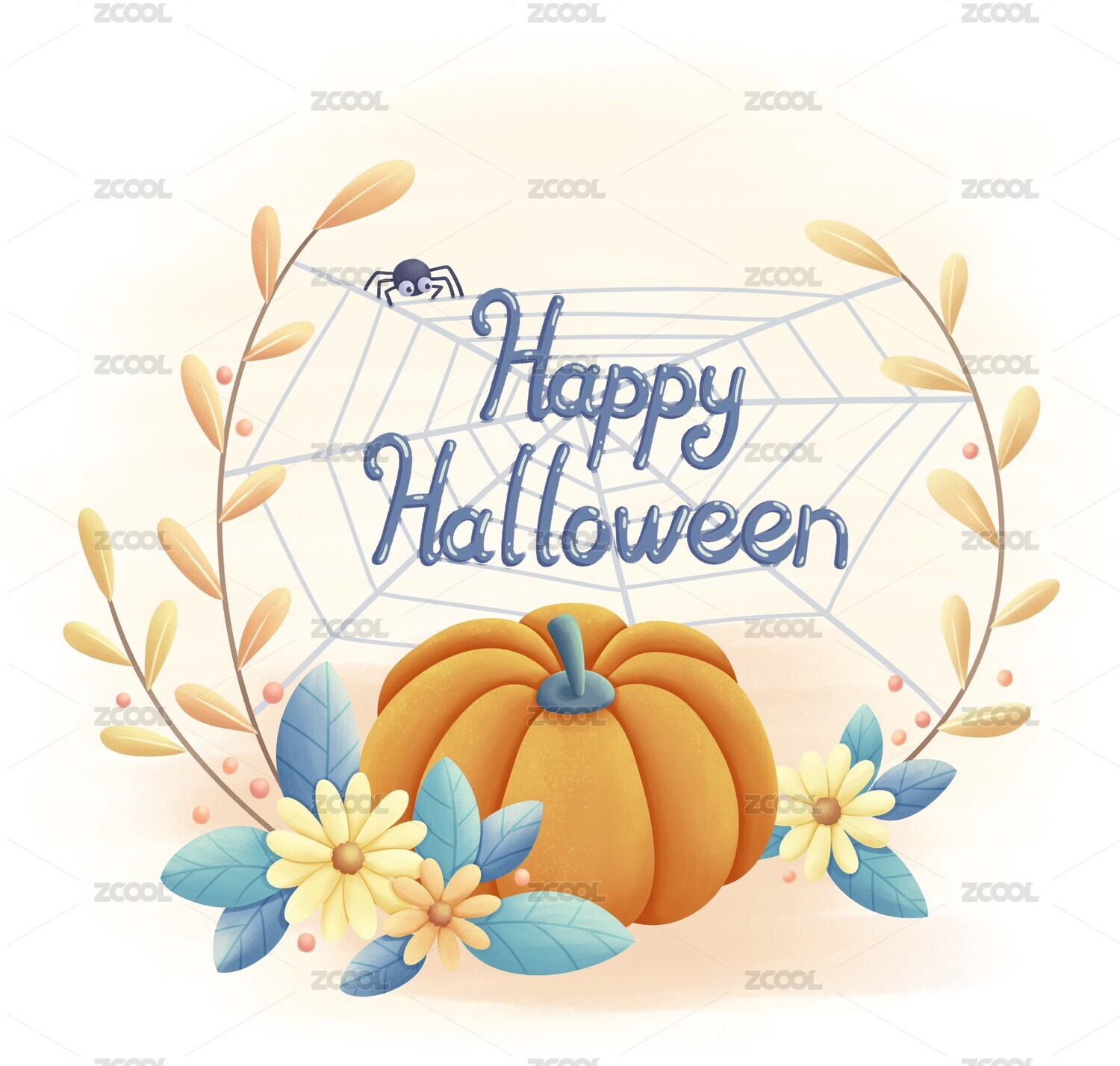 萬圣節(jié)南瓜花卉手繪插畫