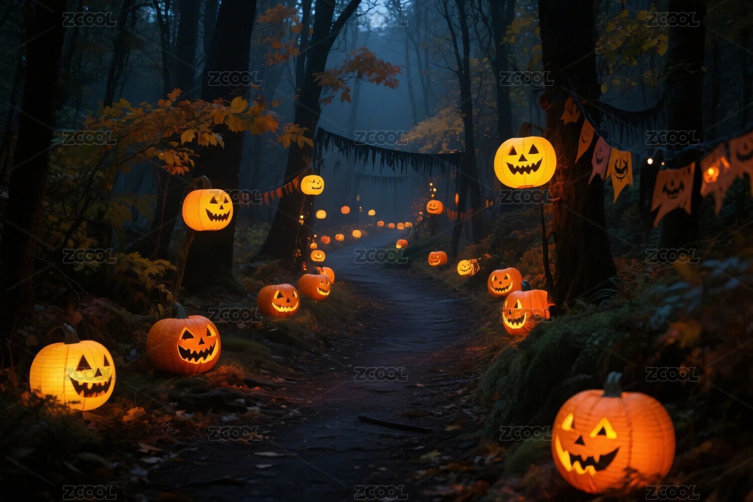 森林南瓜燈萬圣節(jié)場景