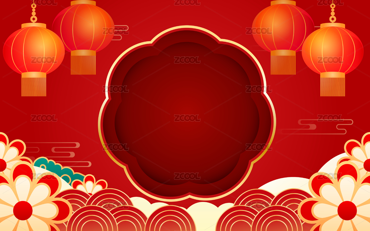 中國風(fēng)國潮建筑掛燈籠錦鯉喜迎節(jié)日