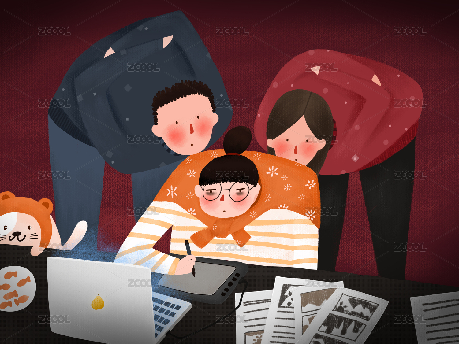 熬夜畫圖的插畫師