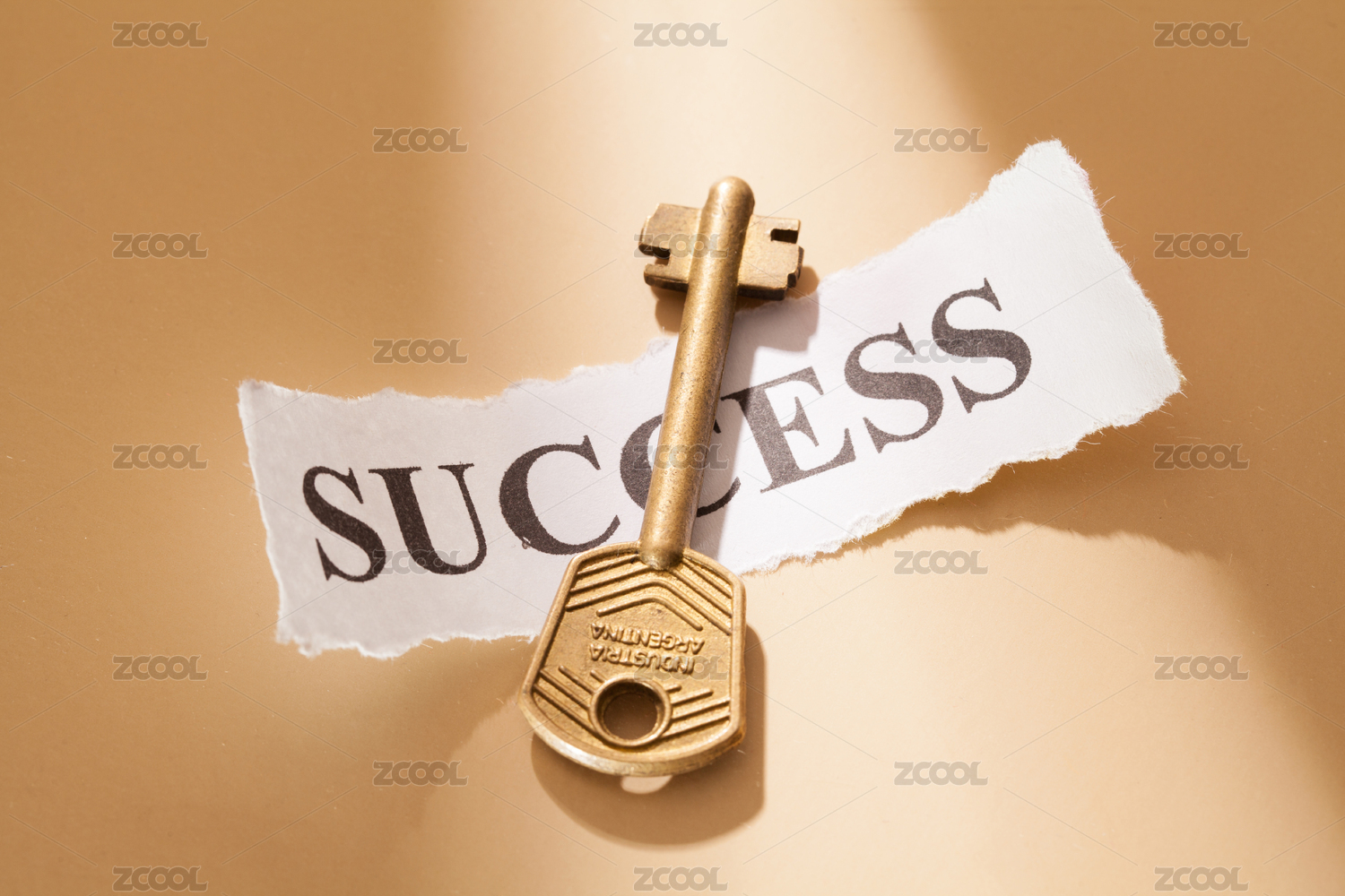 一把金鑰匙壓在寫著成功的紙條上