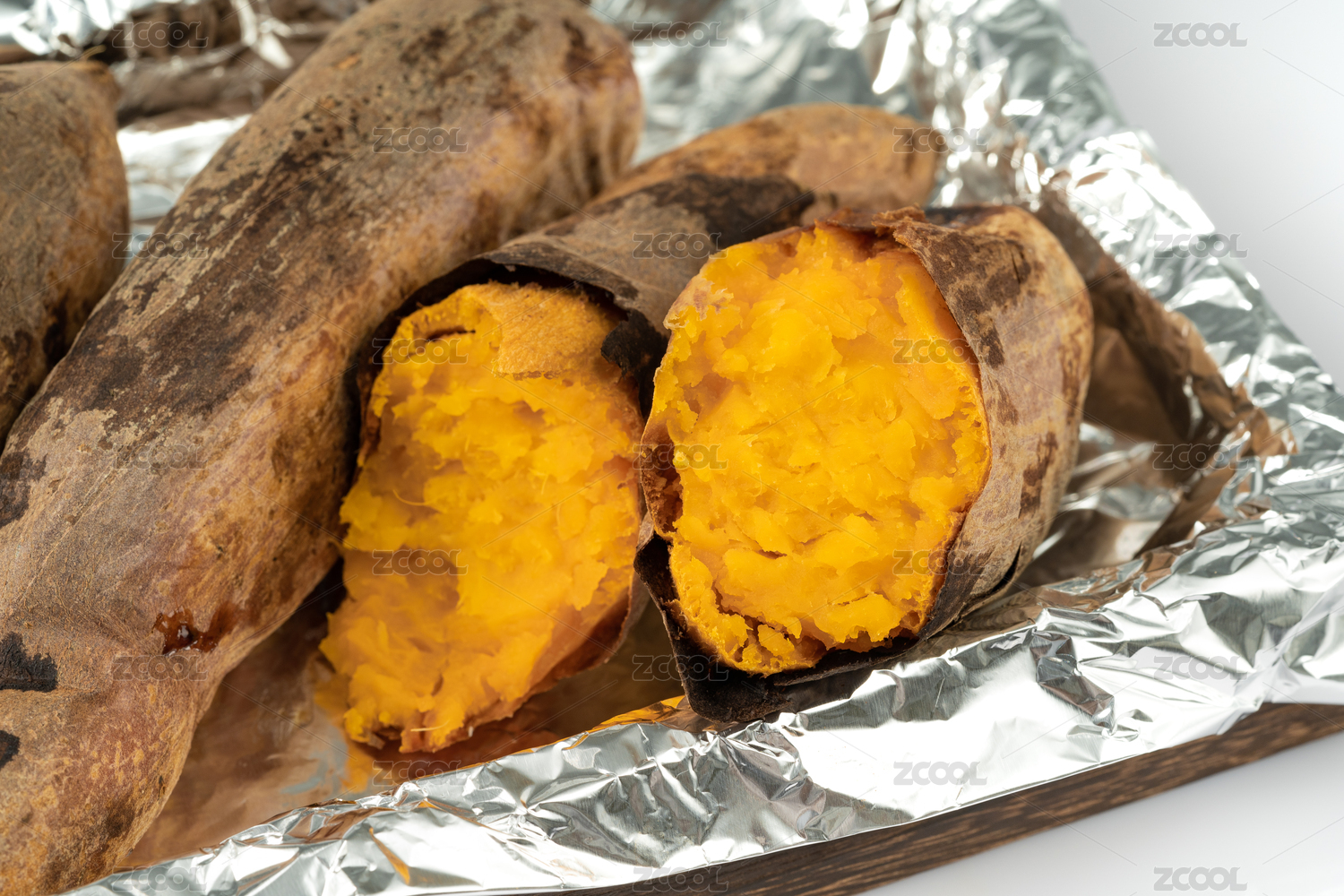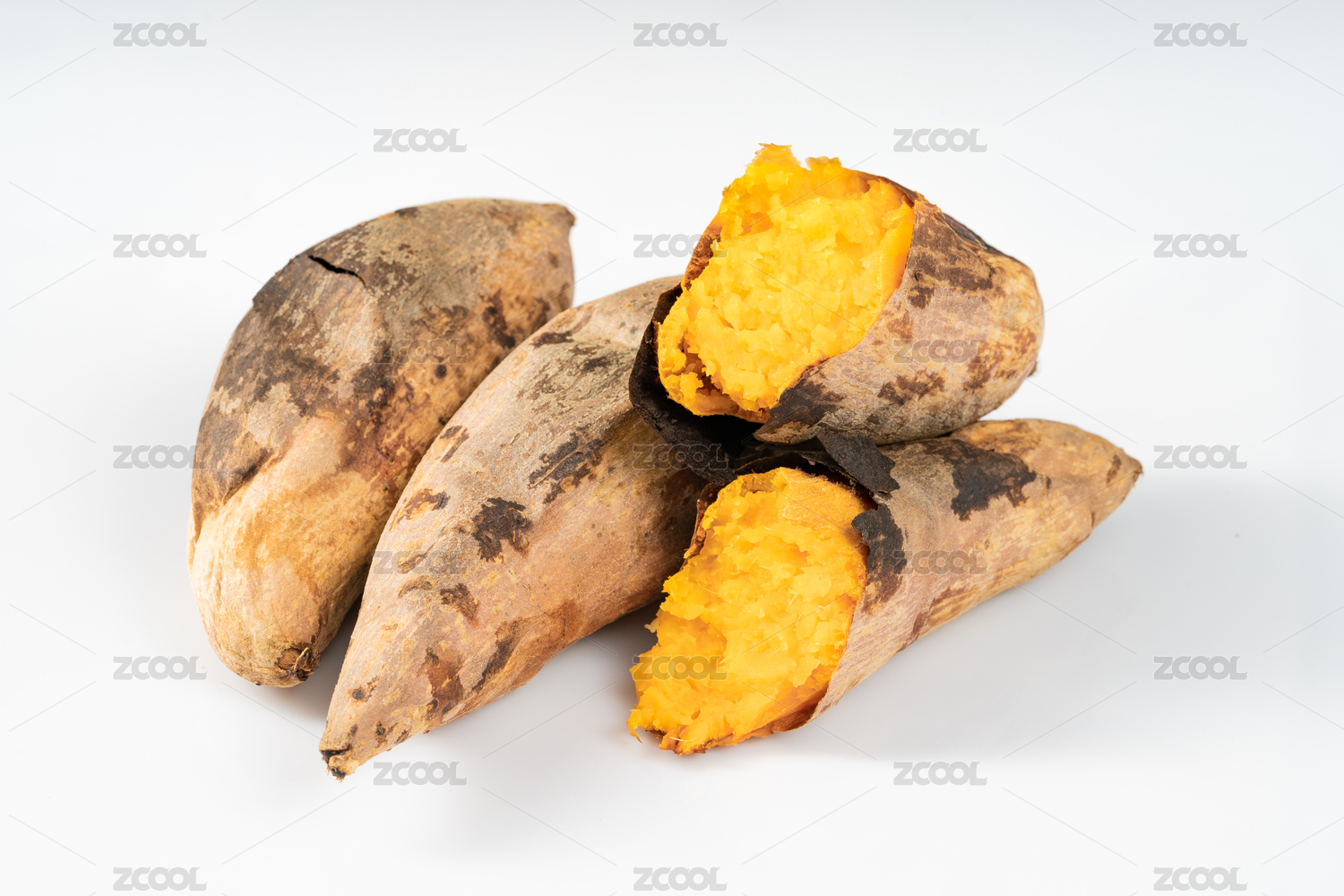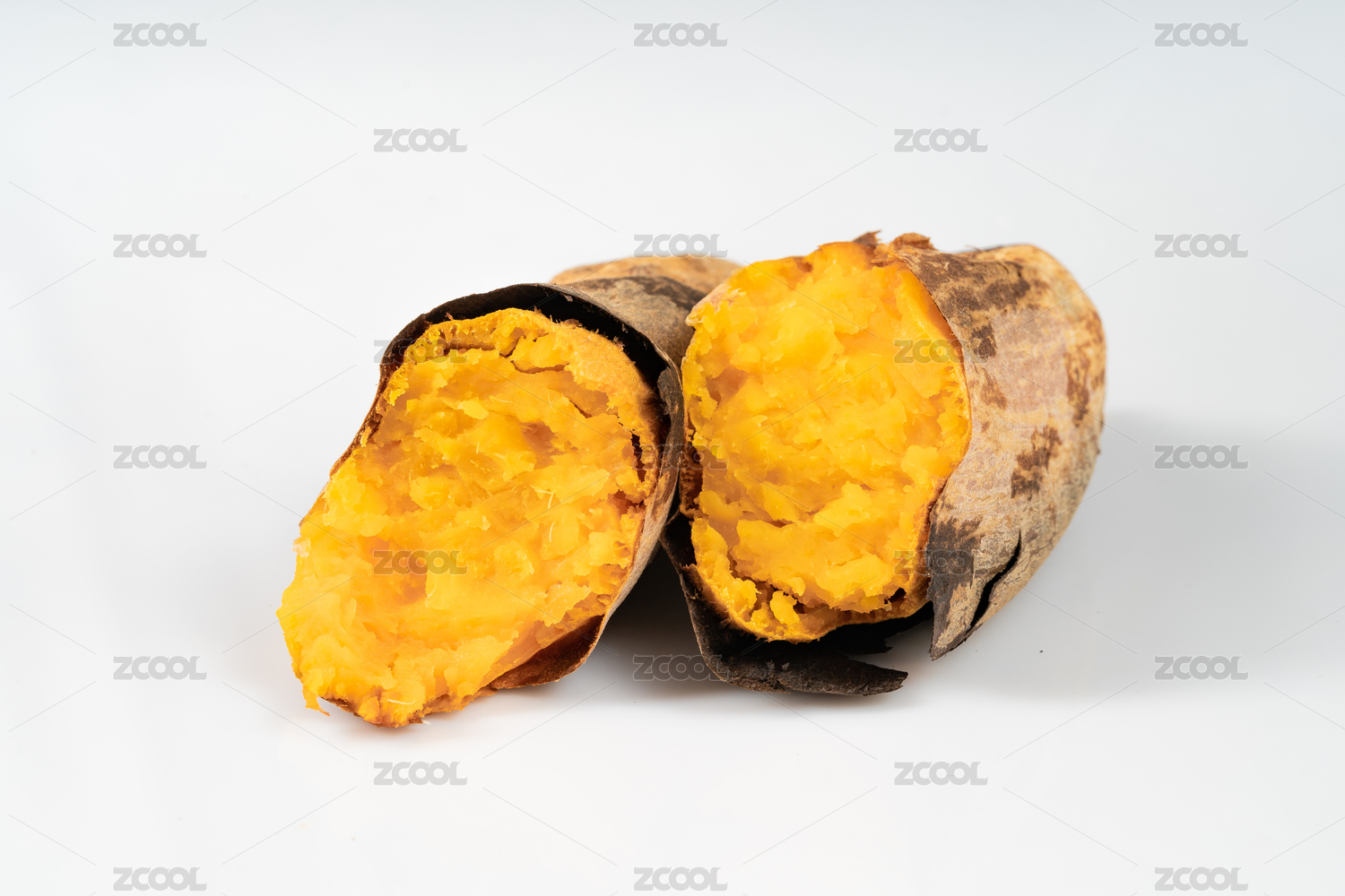 純白色背景下的新鮮烤地瓜