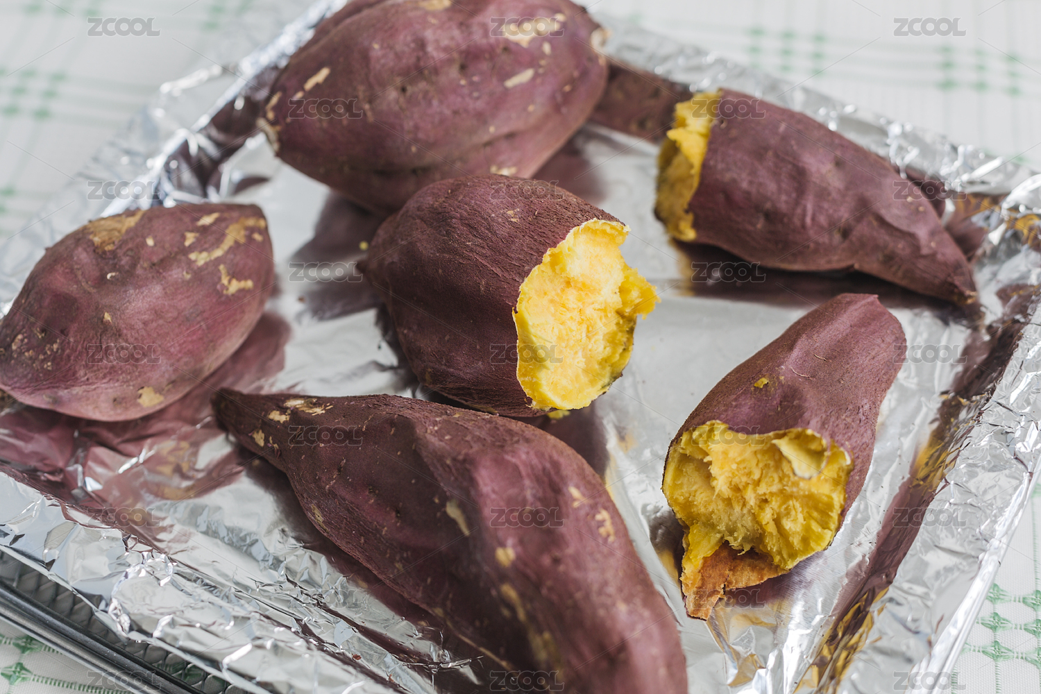 烤盤上擺放的烤地瓜,烤箱美食。