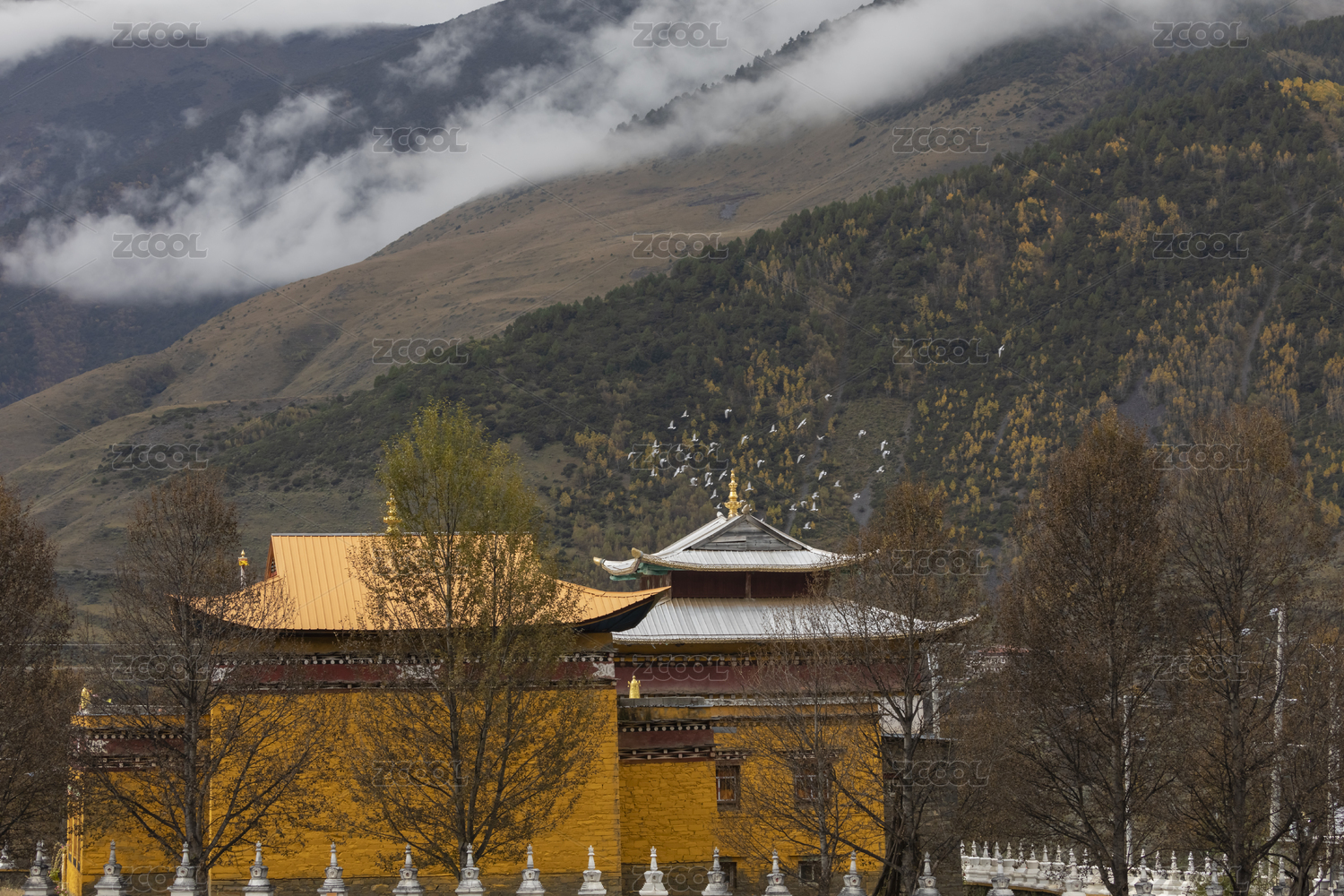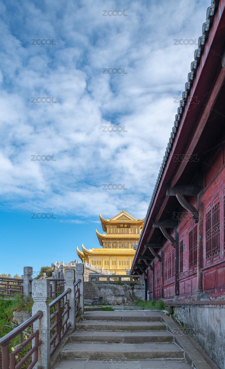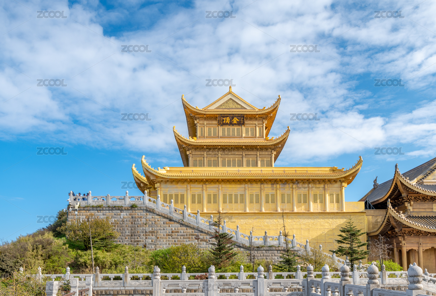 中國四川省峨眉山金頂?shù)膹R宇建筑