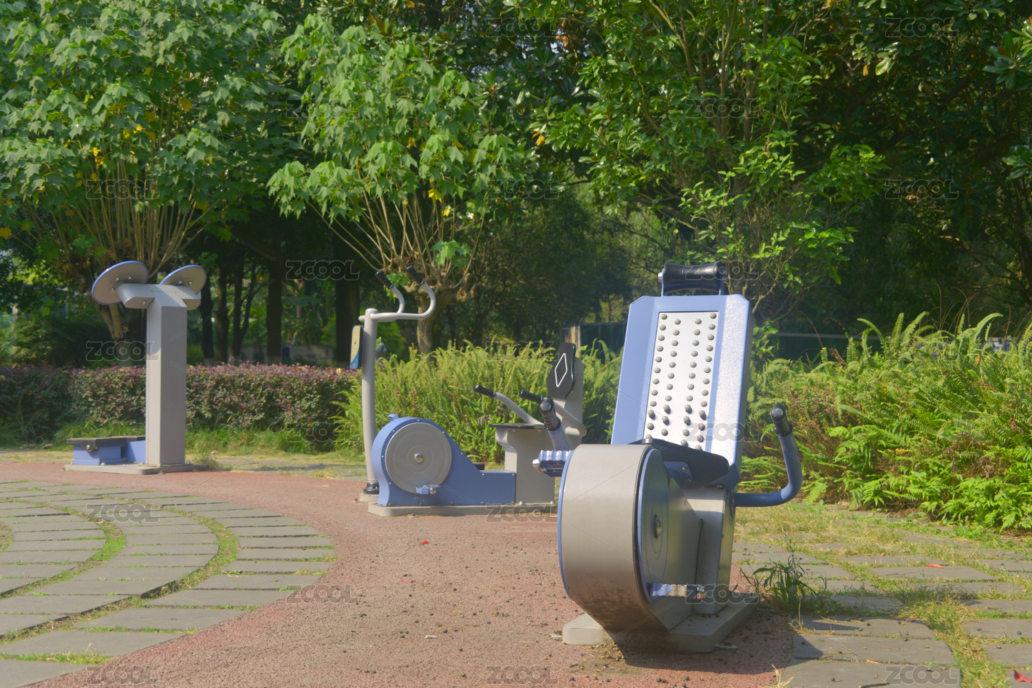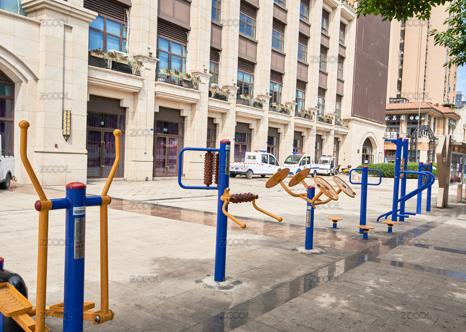 城市廣場(chǎng)上的健身器材組合