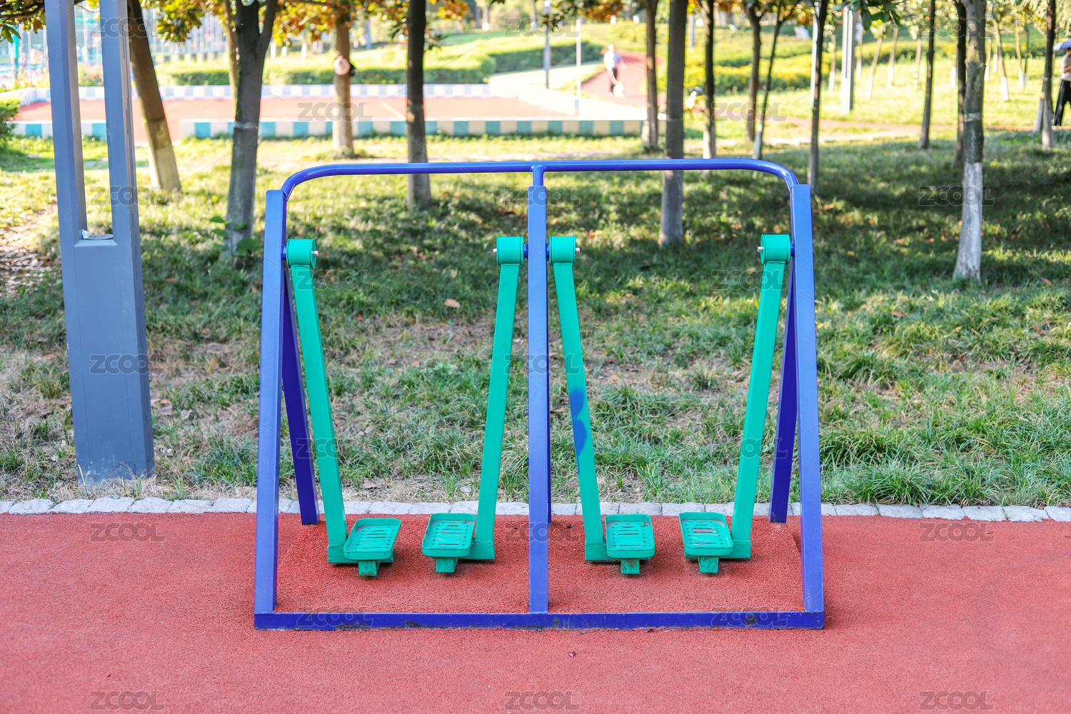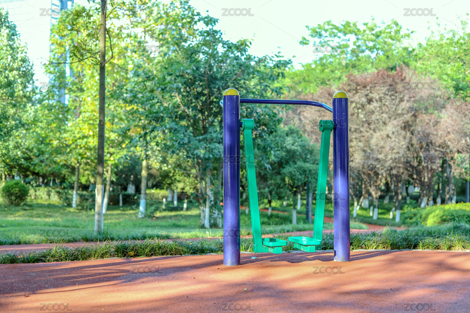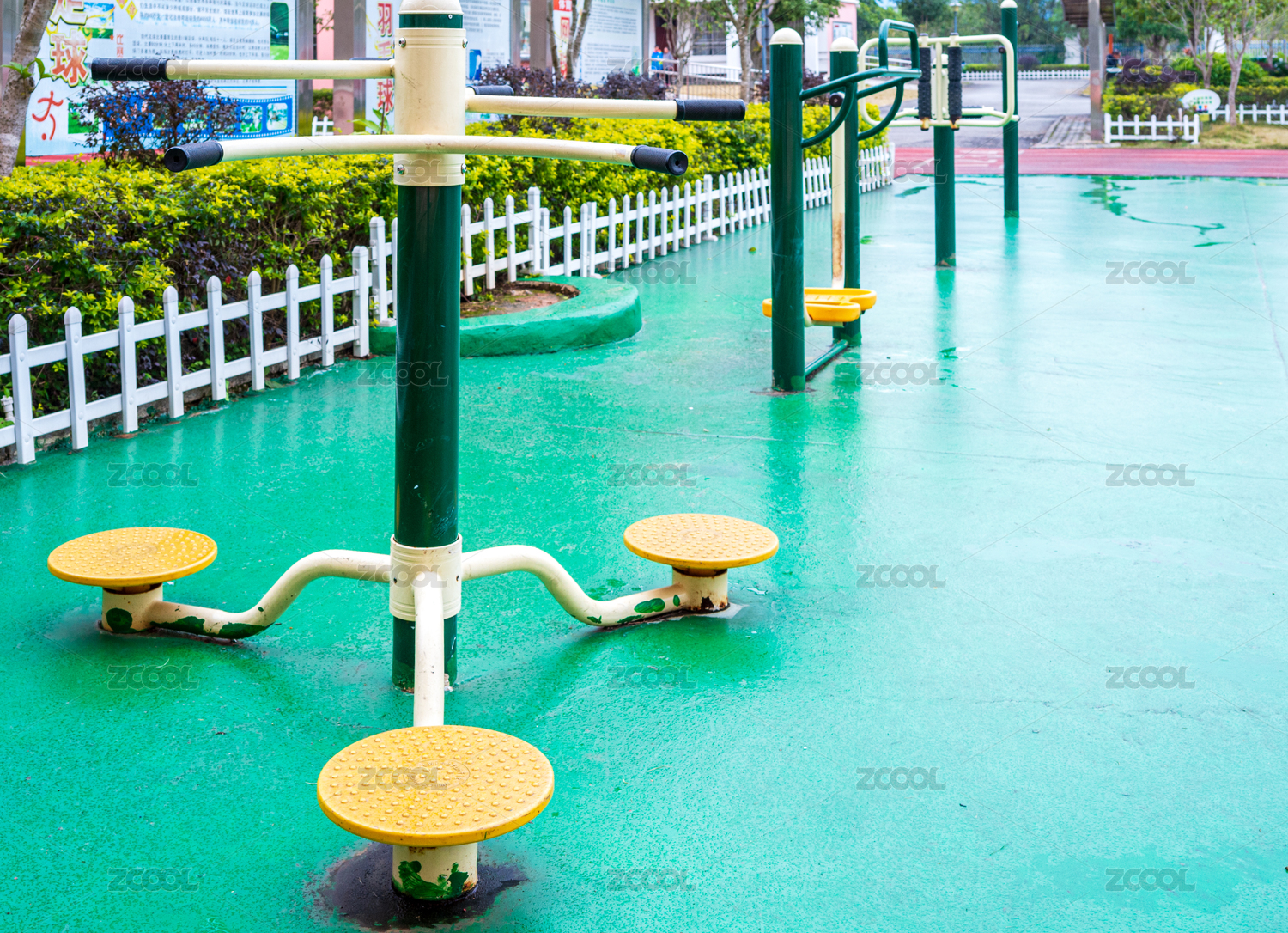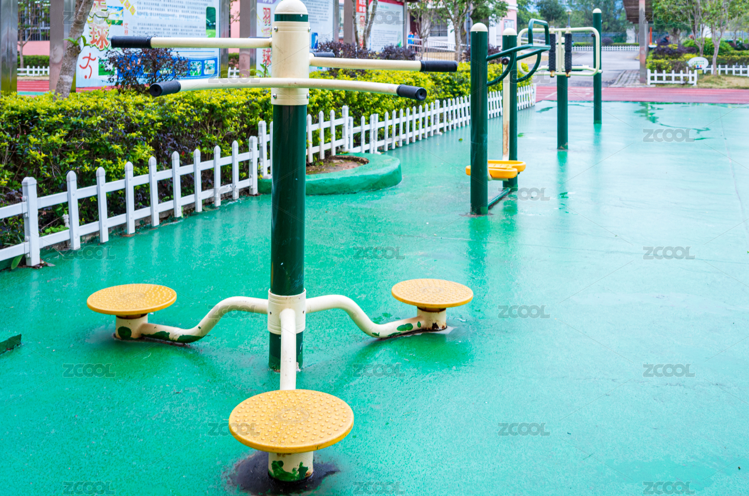 學(xué)校操場(chǎng)青色地板上運(yùn)動(dòng)器材訓(xùn)練場(chǎng)