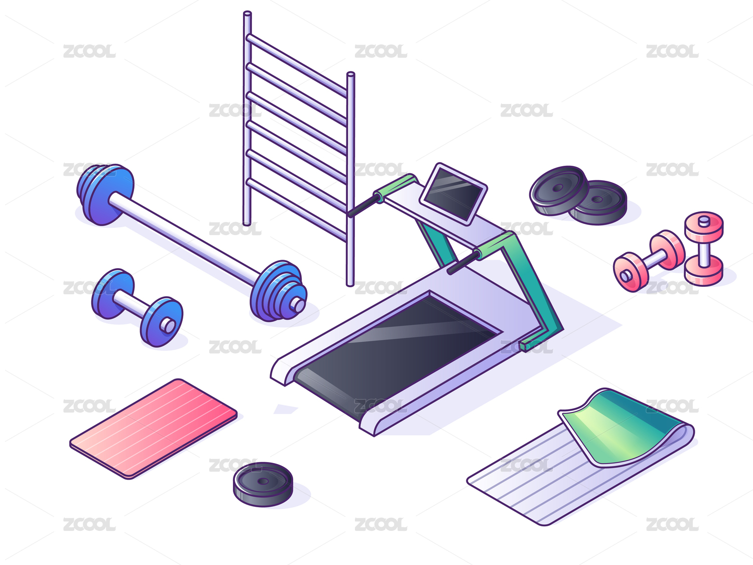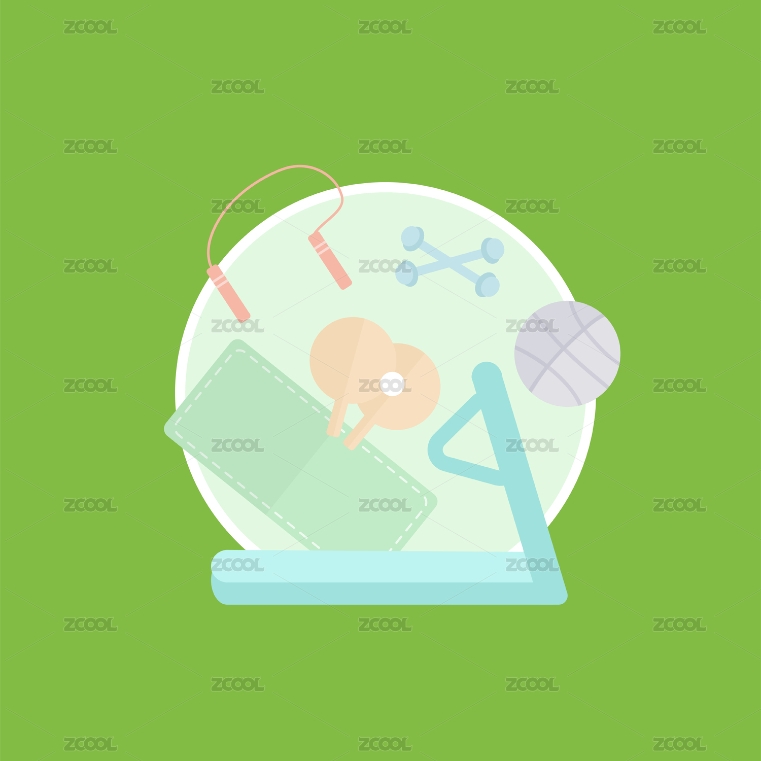 插圖運(yùn)動(dòng)器材小清新健身跑步機(jī)跳繩啞鈴足球
