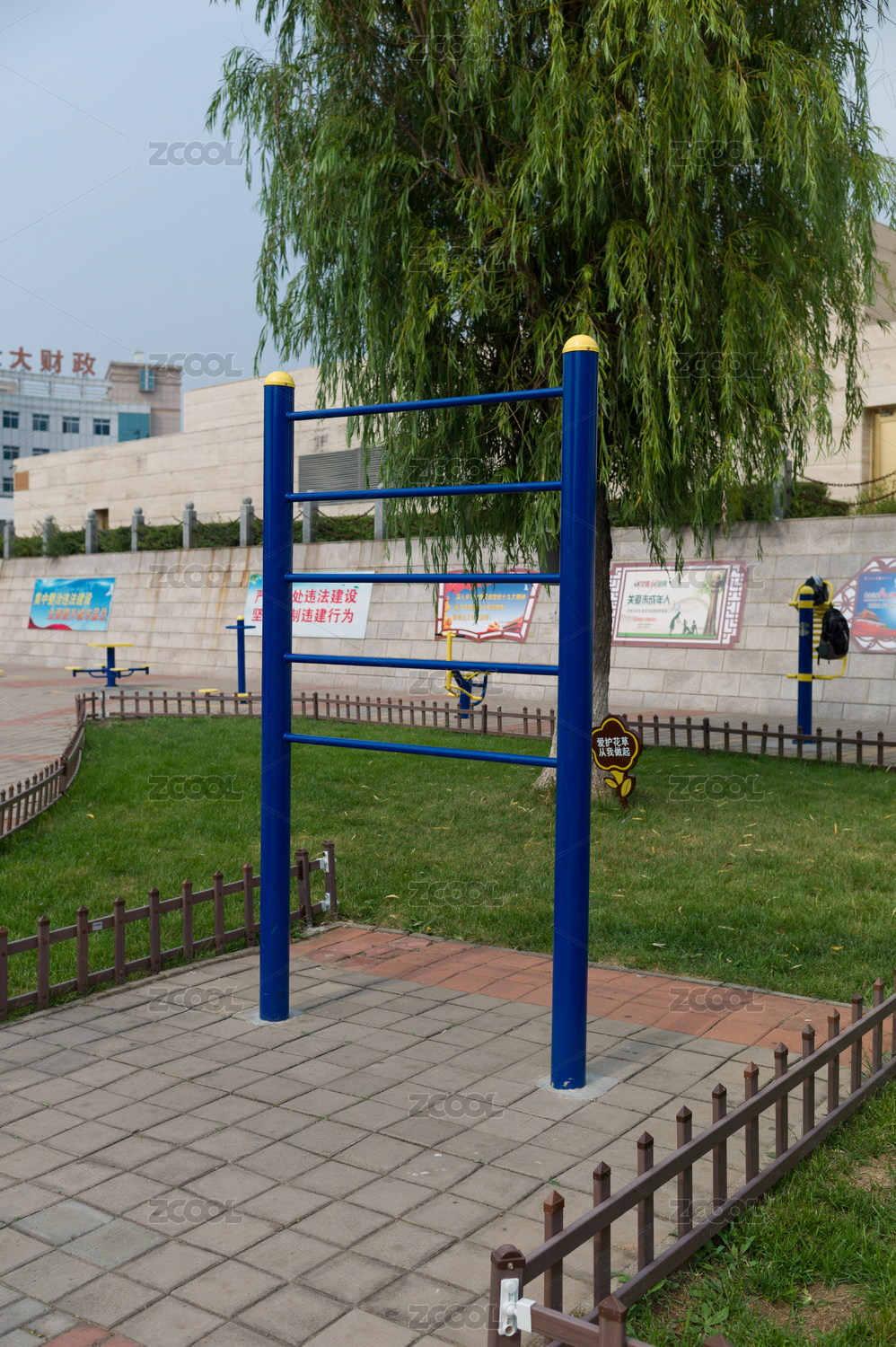 城市廣場(chǎng)上的健身器材肋木
