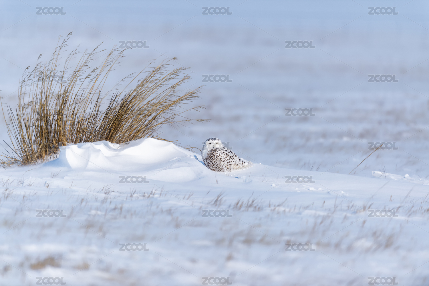 冬季一只雪鸮棲息在雪地上