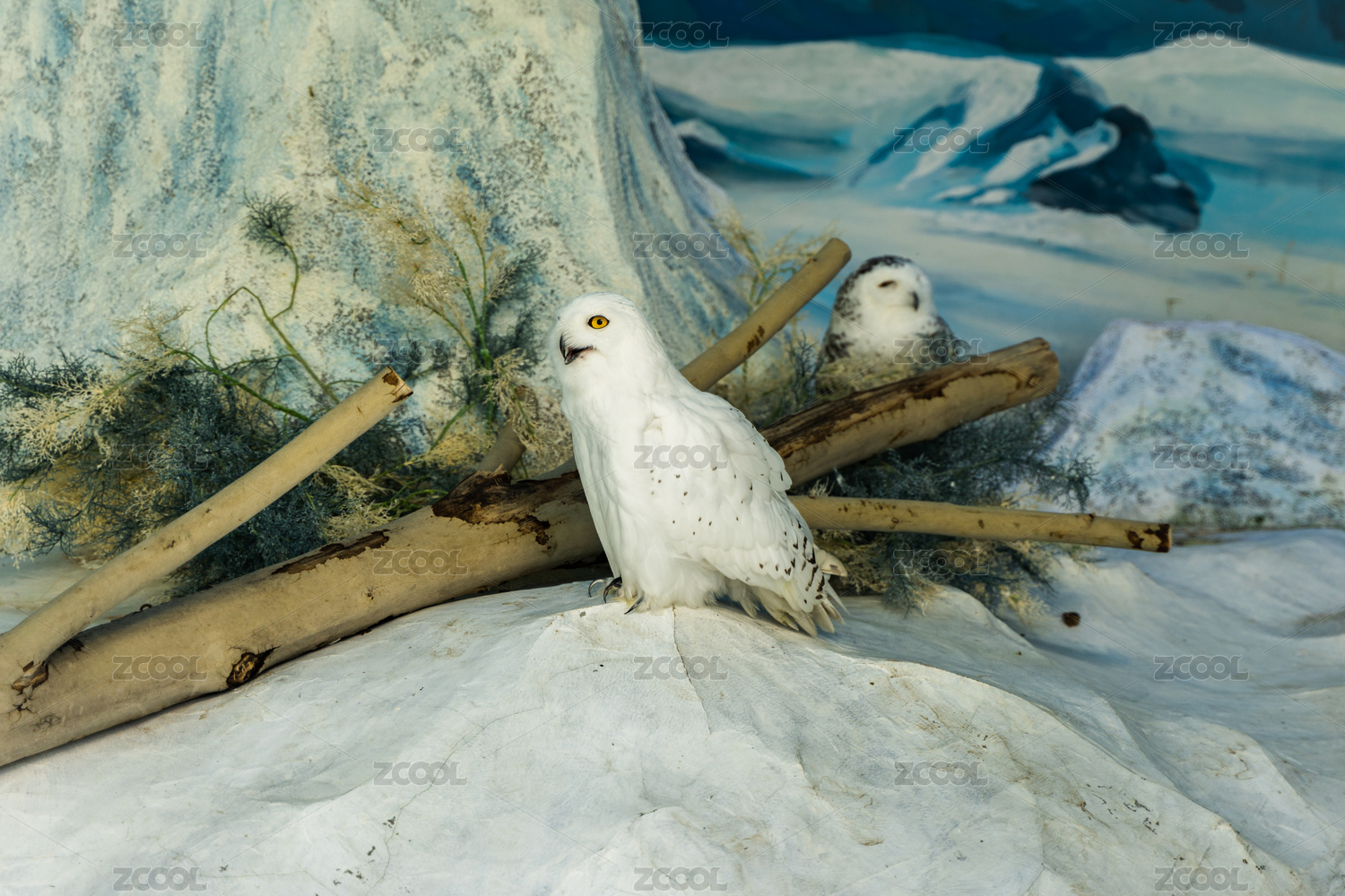 冬天日本北海道旭川市旭山動物園的雪鸮