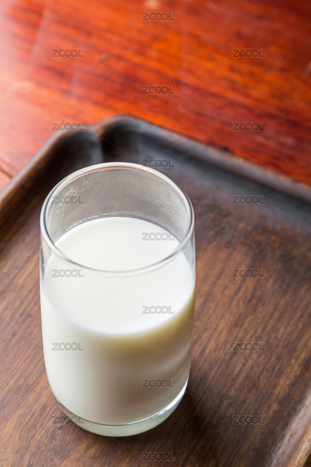 一杯牛奶放在復(fù)古實木托盤里