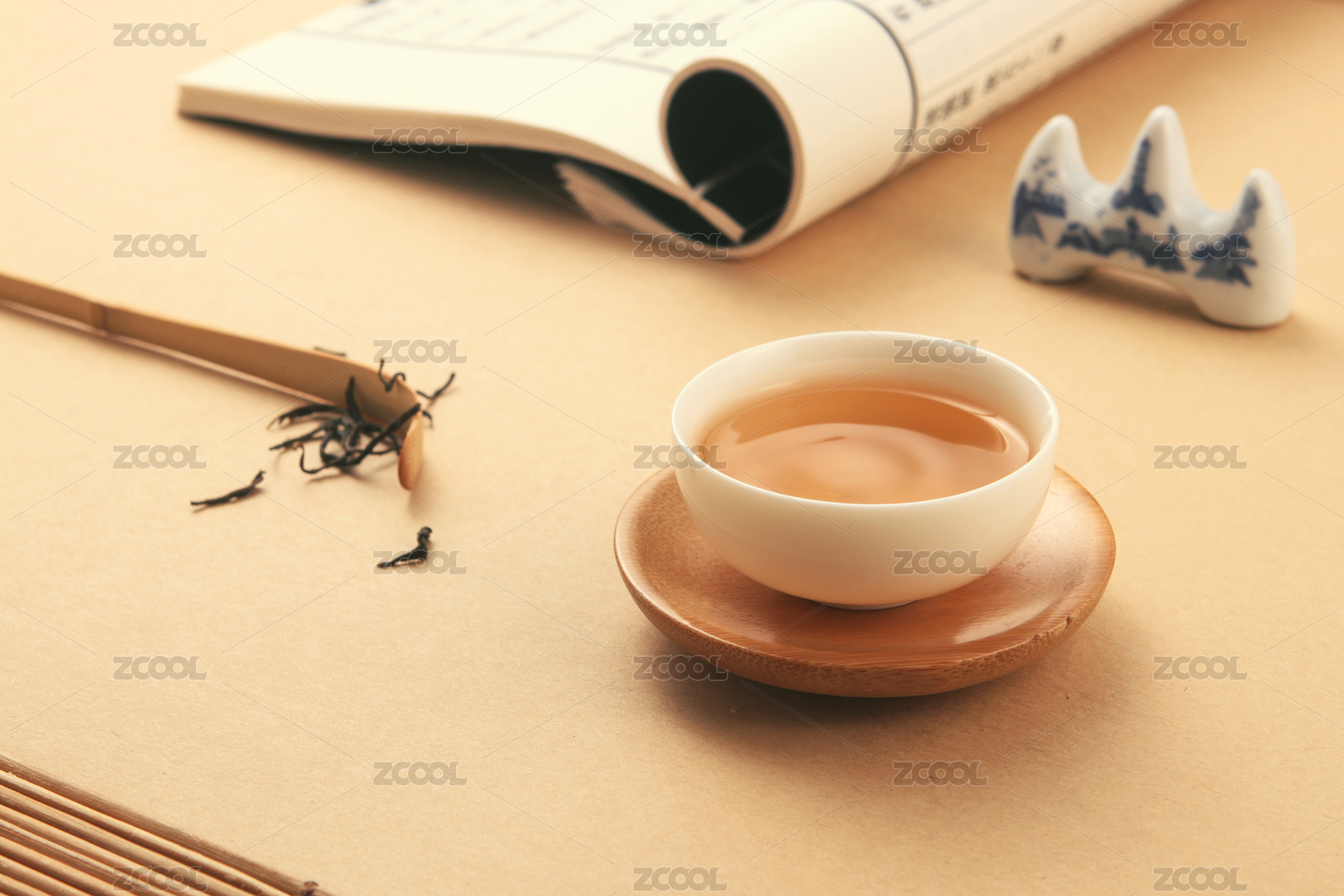 泛黃古書上的一杯茶和鎮(zhèn)紙