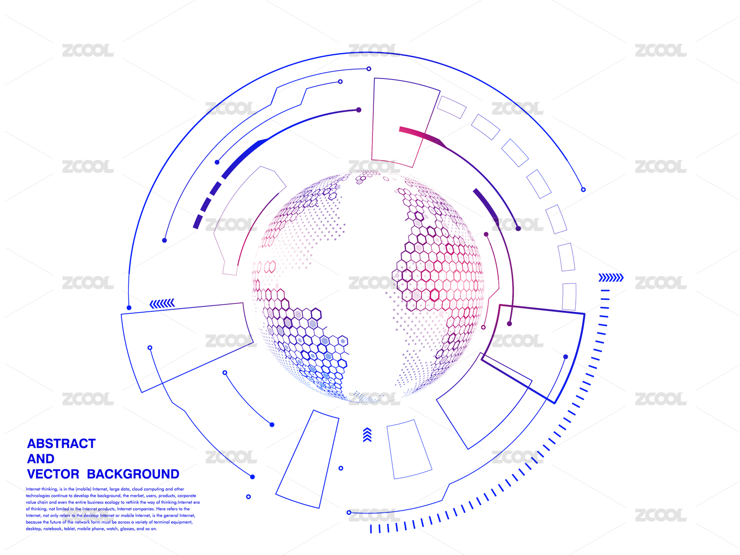 虛擬科技界面,六邊形網(wǎng)格矢量地球