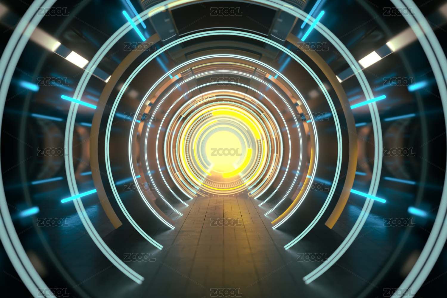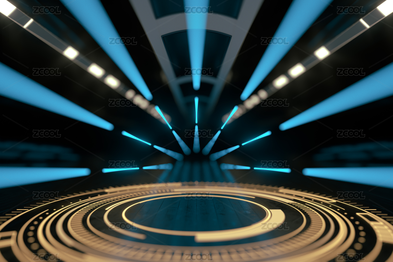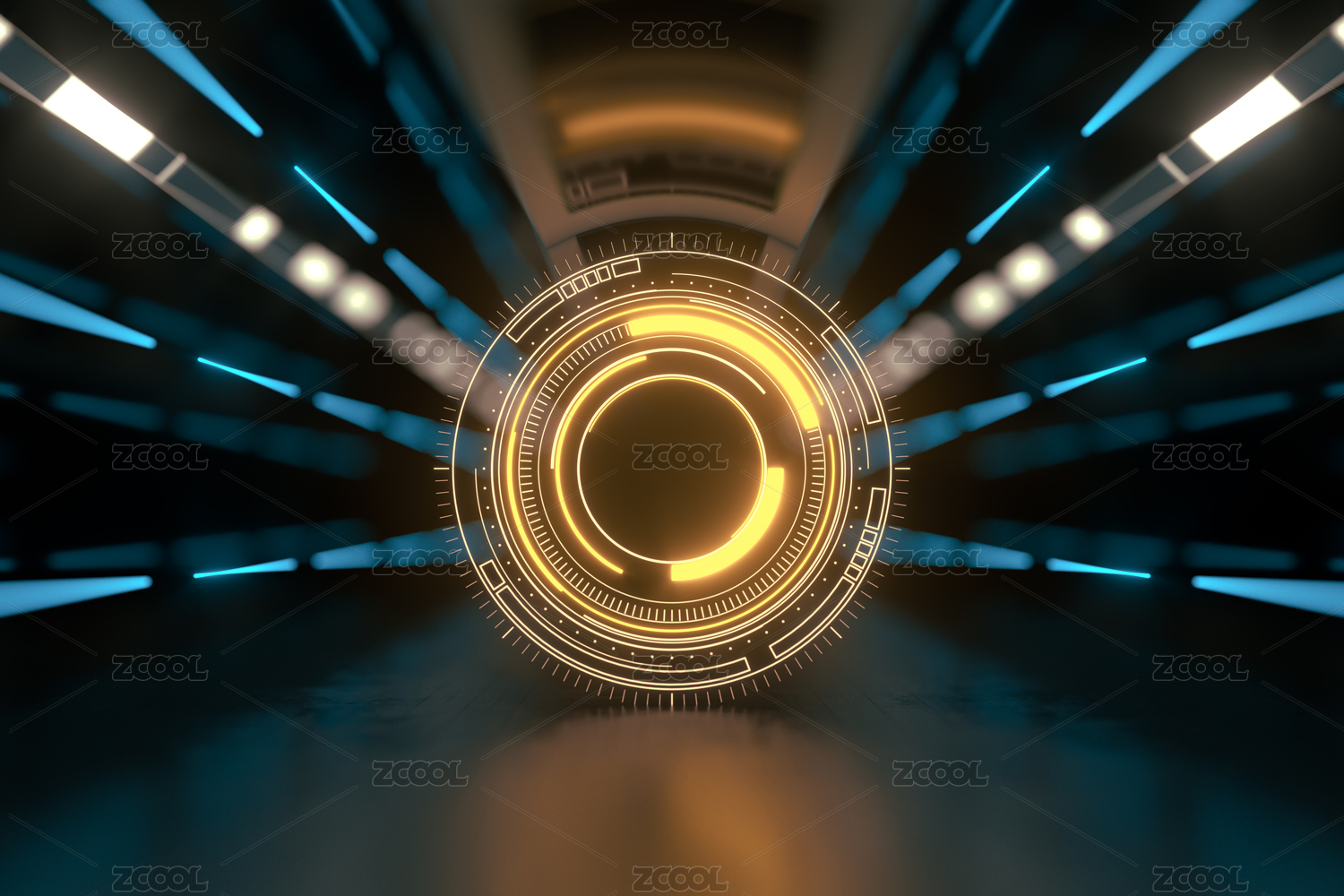 科技感HUD線條與室內(nèi)空間 3D渲染