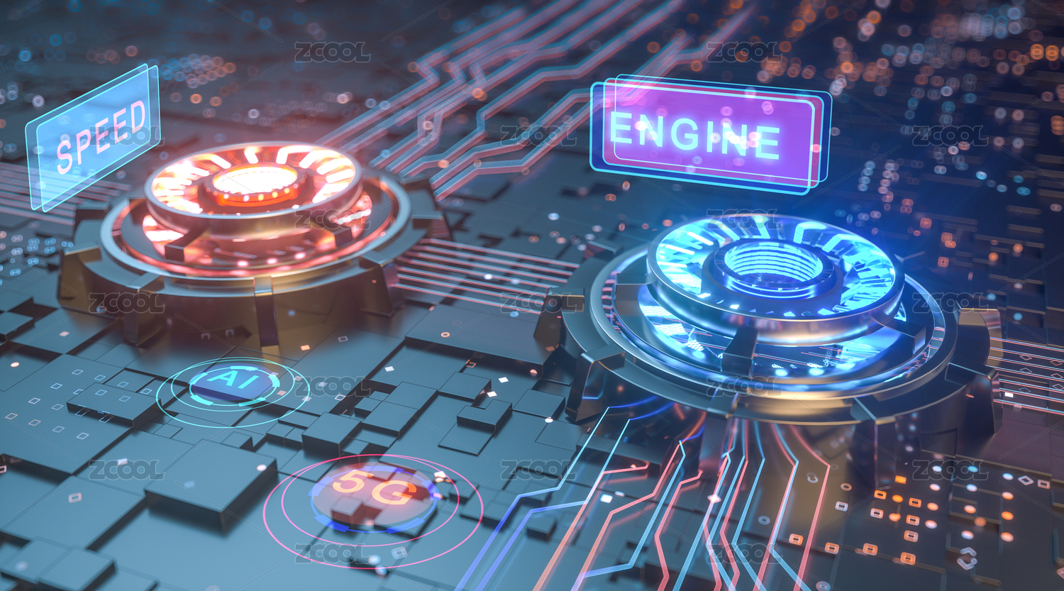 科技電子游戲引擎電子設(shè)備硬件雙引擎閃充hud顯示