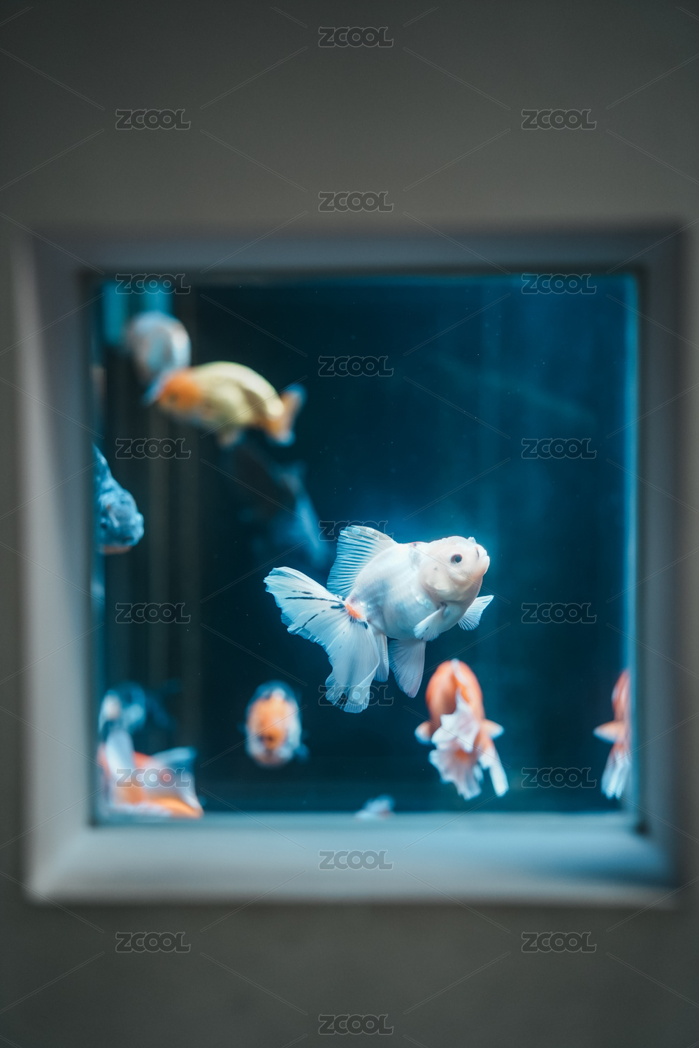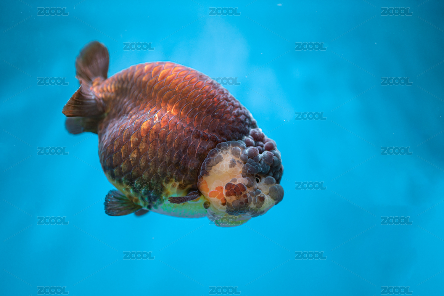 魚缸里一條寵物觀賞魚,金龍魚頭部特寫