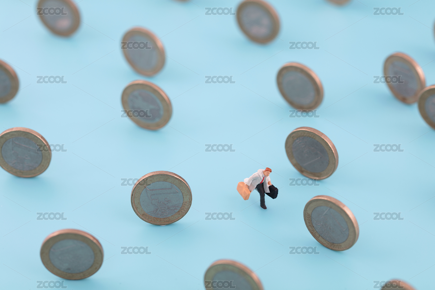 微縮攝影追逐利益在硬幣中奔跑