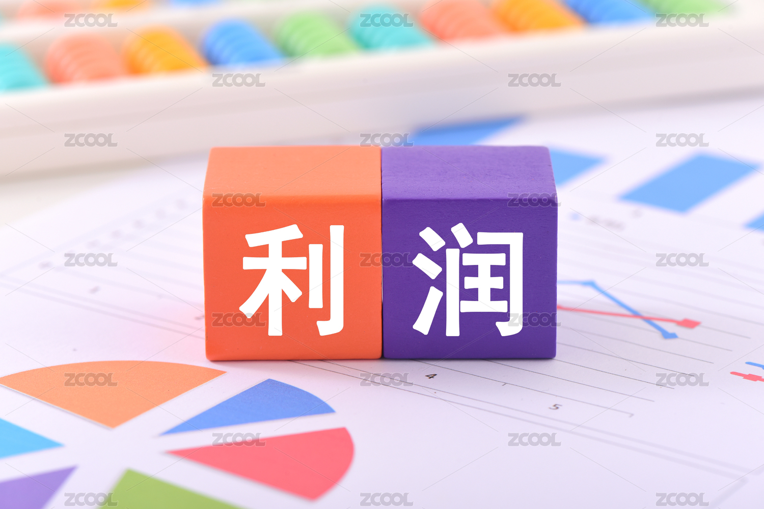 金融辦公用品上放著文字積木利潤(rùn)