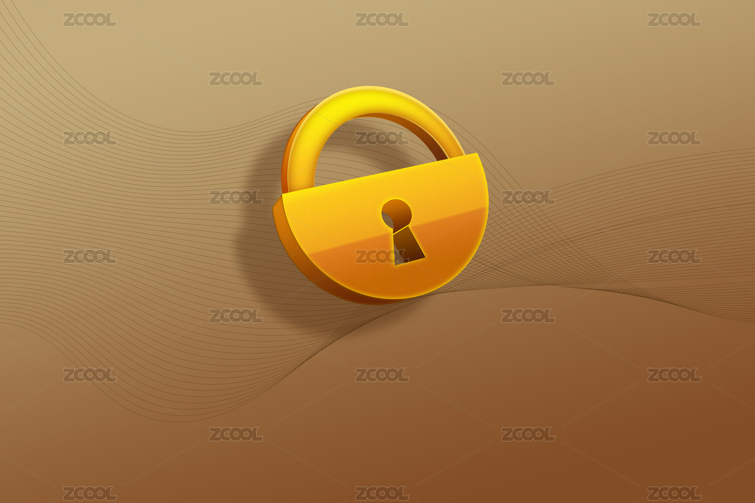 金色鎖頭加密插畫