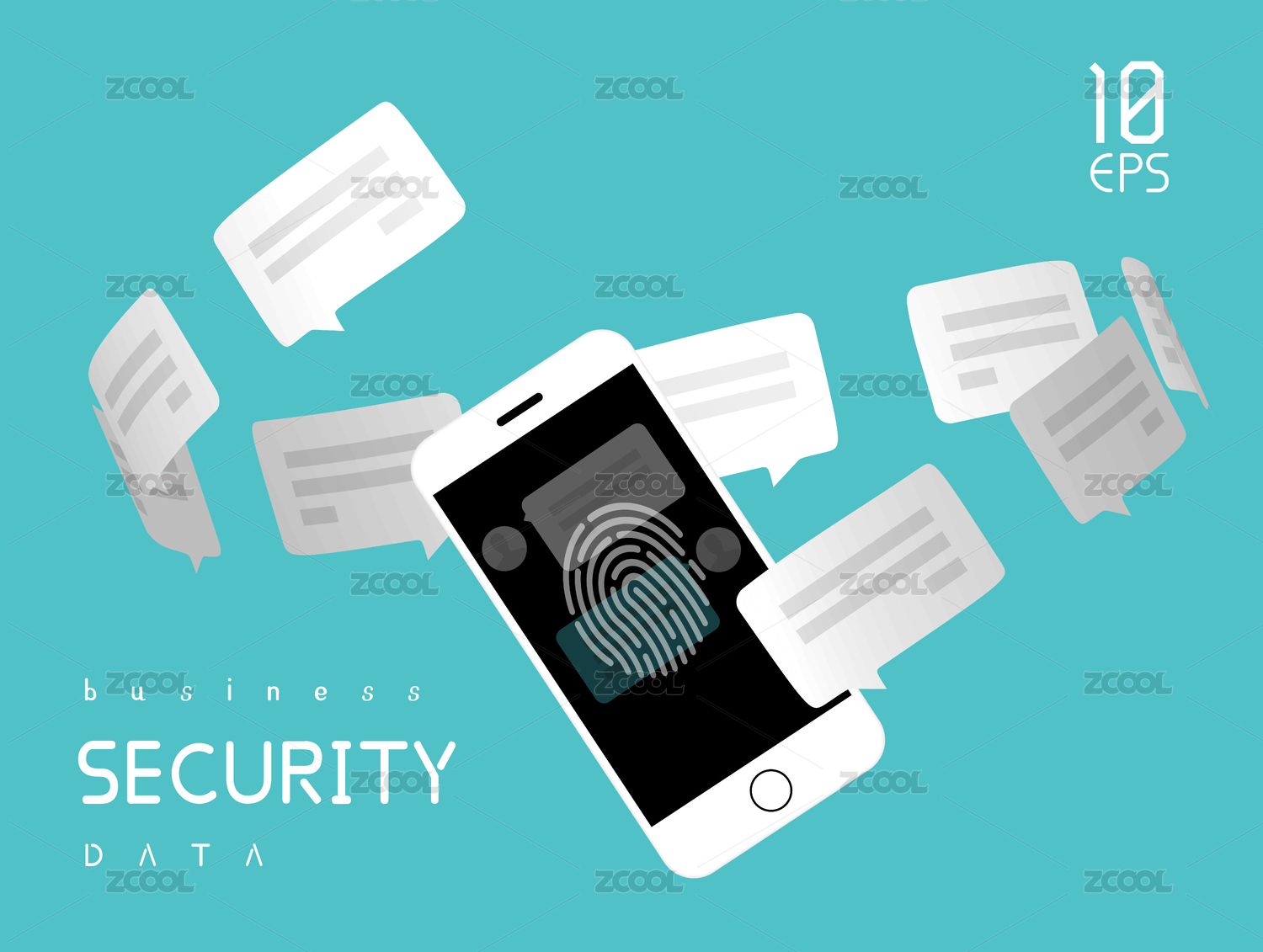 手機(jī)與對(duì)話框組成的個(gè)人隱私數(shù)據(jù)安全矢量插畫