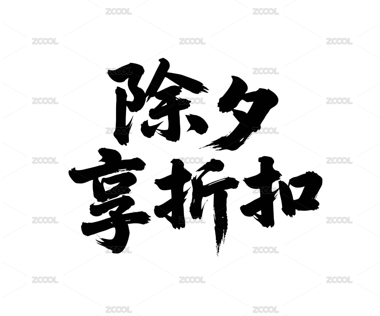 除夕享折扣矢量書(shū)法手寫(xiě)毛筆字