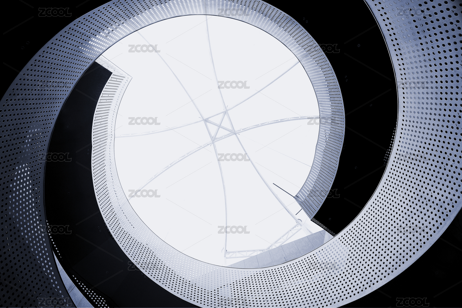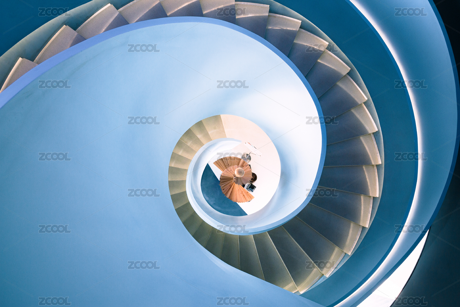 東方廣場(chǎng)室內(nèi)藍(lán)色旋轉(zhuǎn)樓梯全景