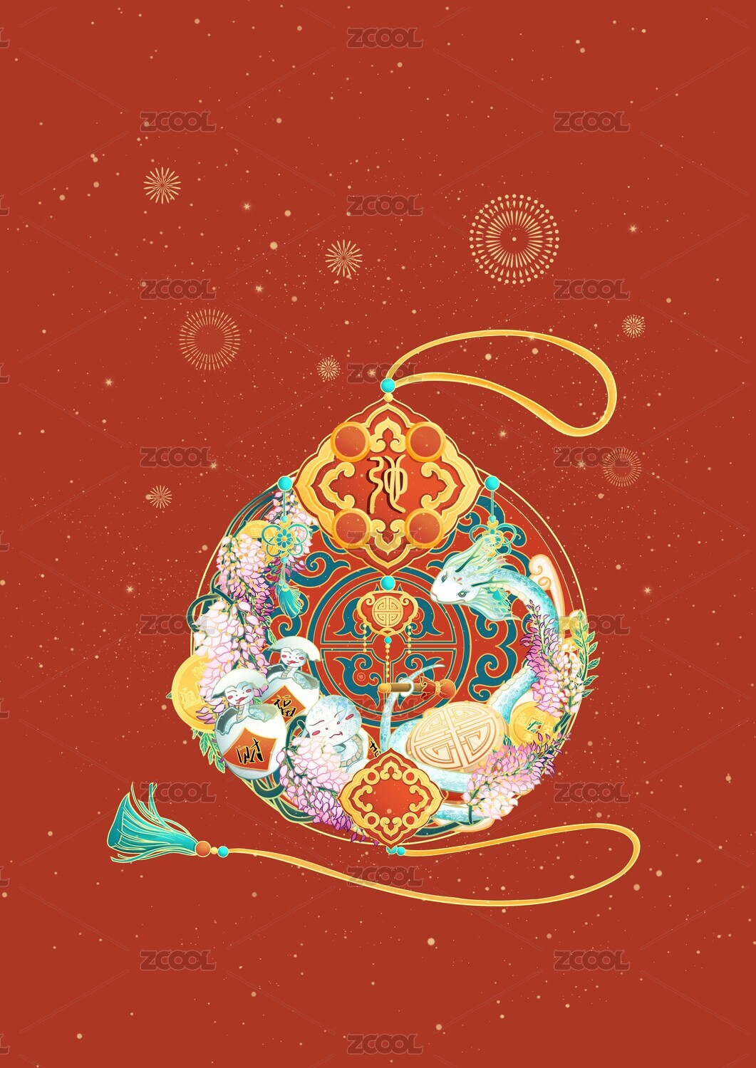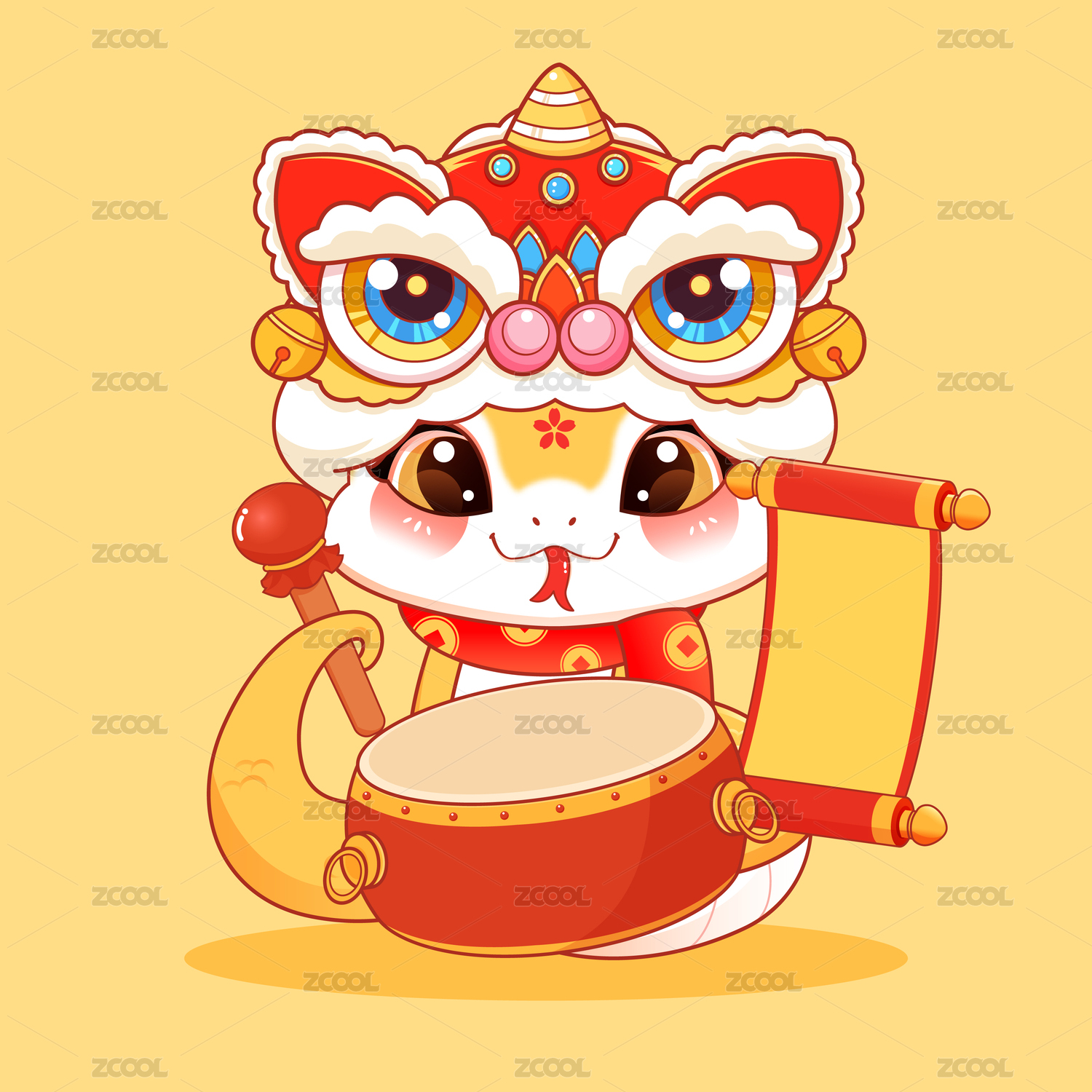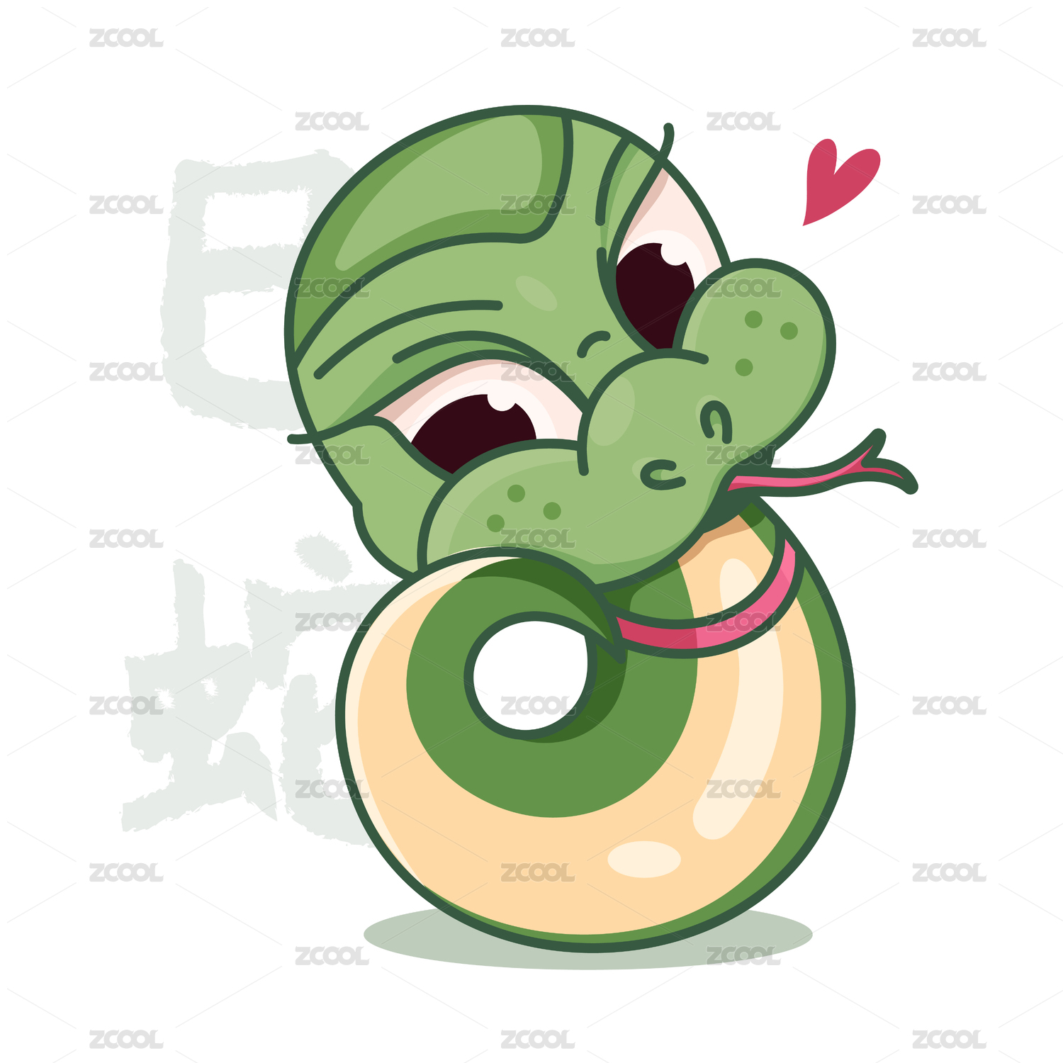 國潮十二生肖巳蛇時(shí)尚印花裝飾紋樣卡通形象