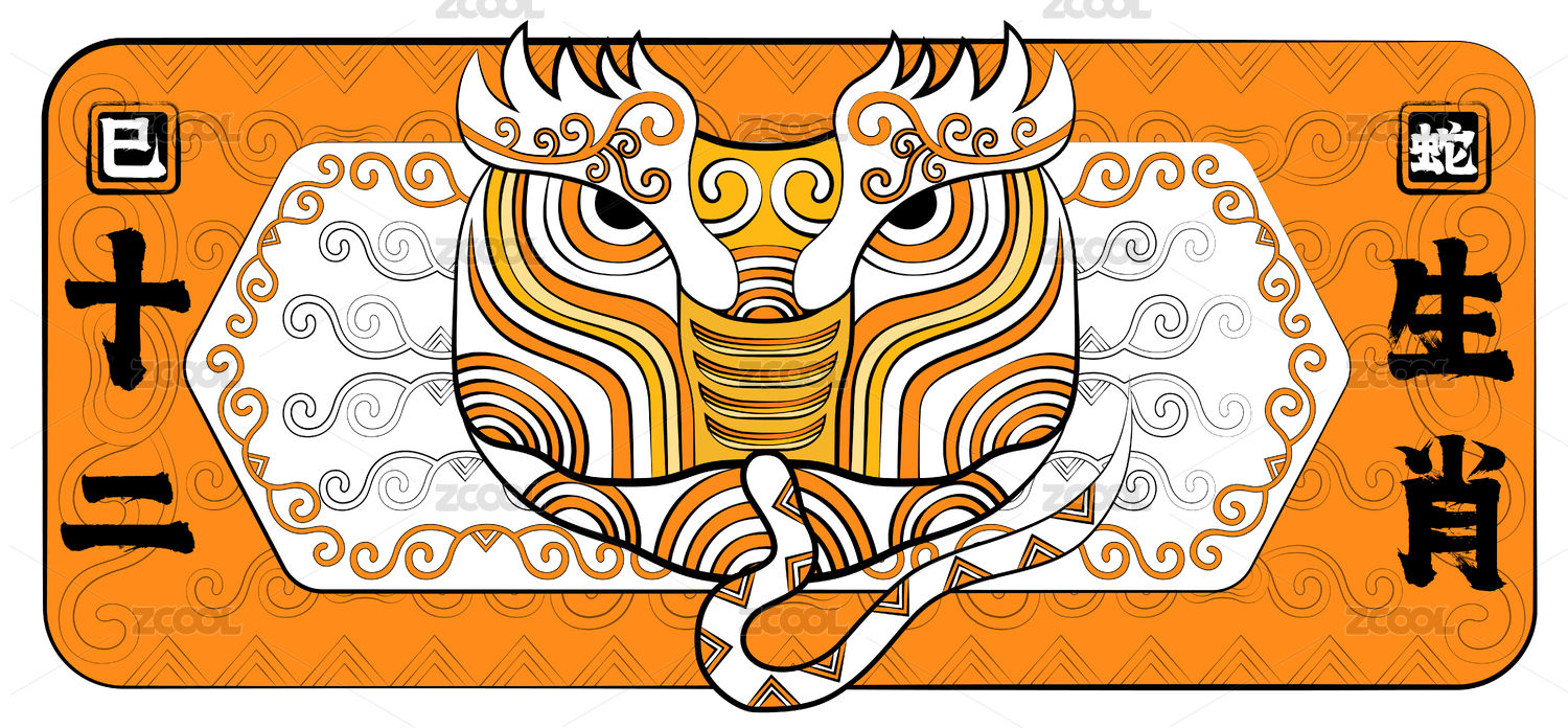 國潮巳蛇十二生肖印花潮流裝飾紋樣卡通形象