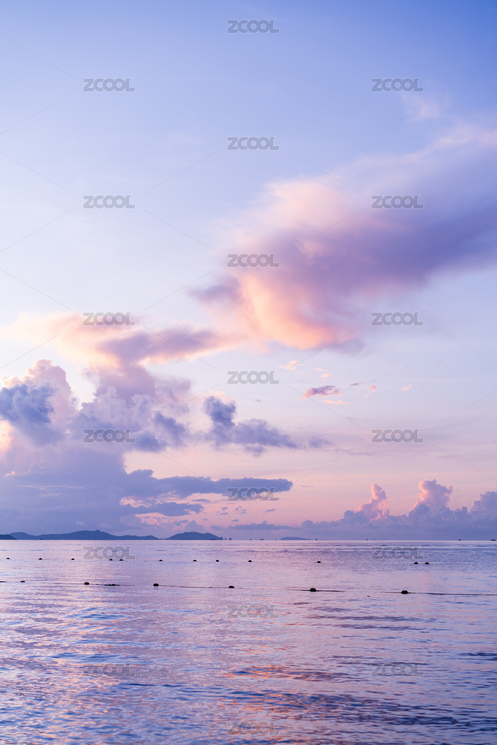 日出時紫色的天空和大海