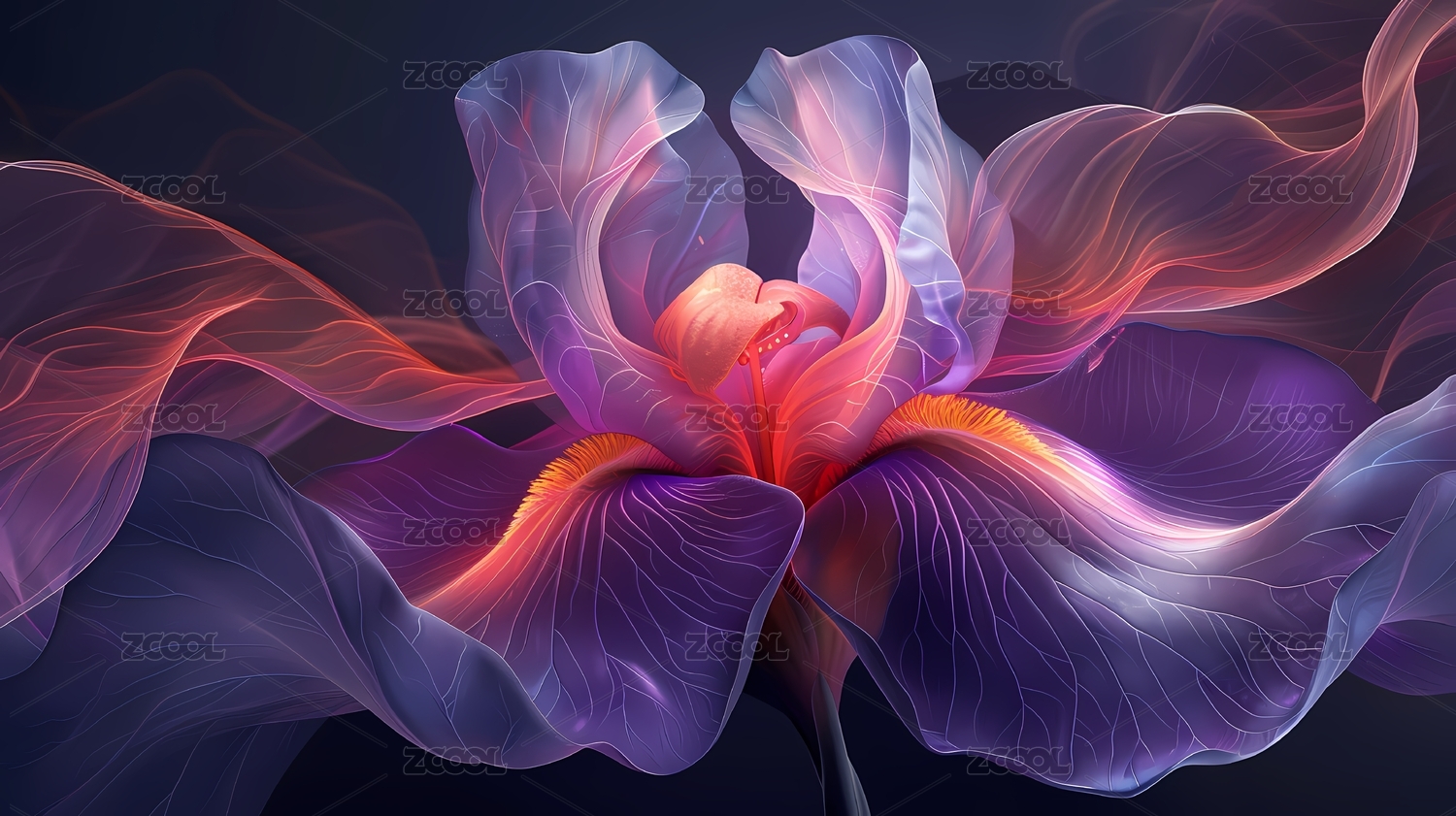 數(shù)碼科技透明抽象淺紫色鳶尾花海報背景