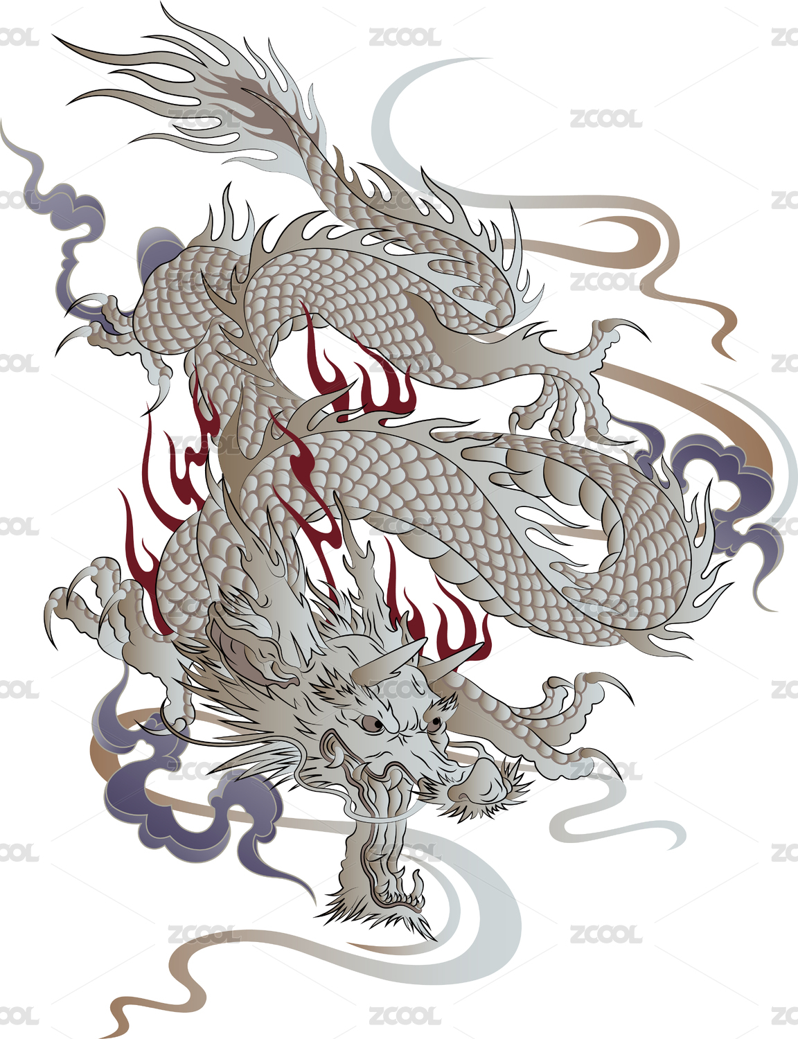 中國(guó)風(fēng)國(guó)潮復(fù)古古典飛龍?jiān)谔觳瀹?huà)
