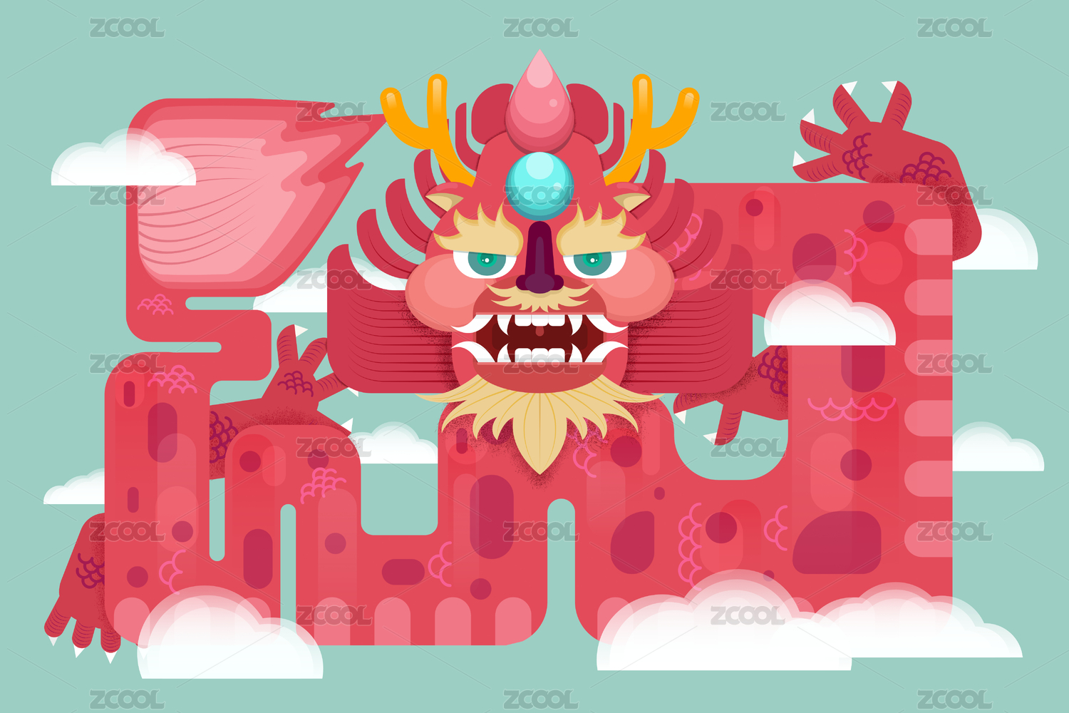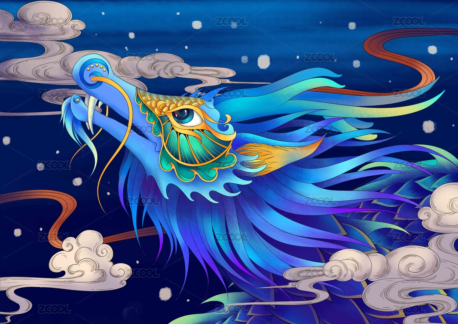 中國(guó)風(fēng)國(guó)潮復(fù)古飛龍?jiān)谔靷鹘y(tǒng)文化藝術(shù)插畫(huà)
