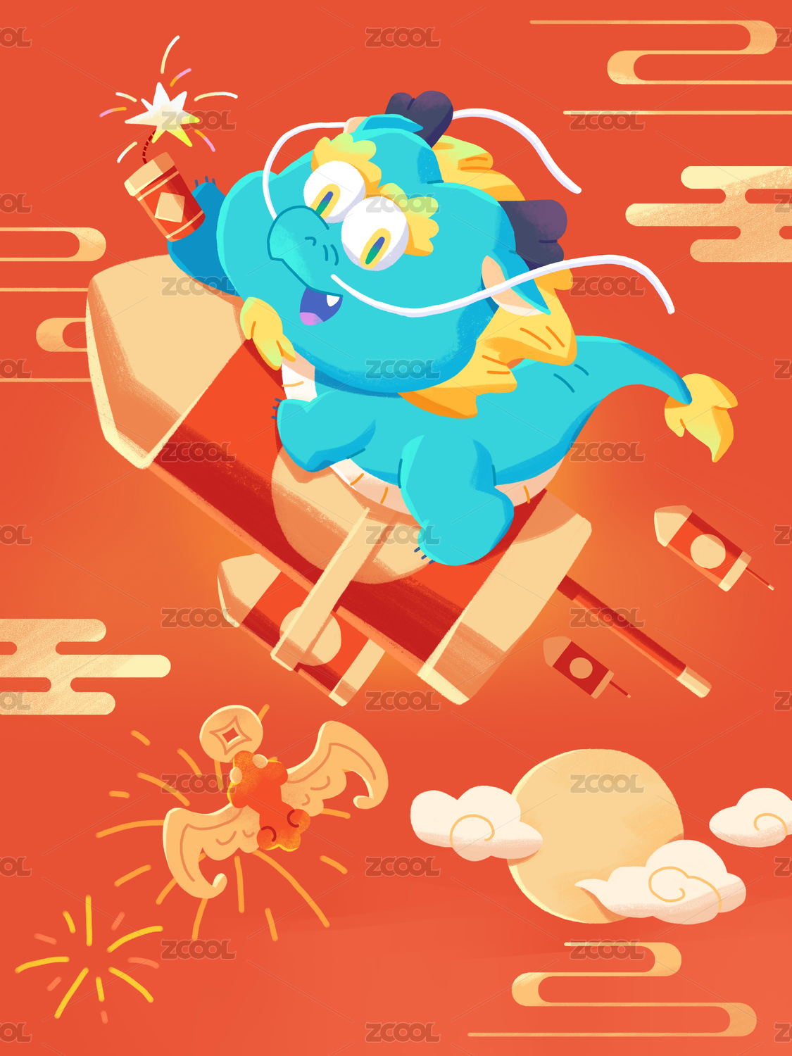 矢量端午飛龍?jiān)谔?/div>