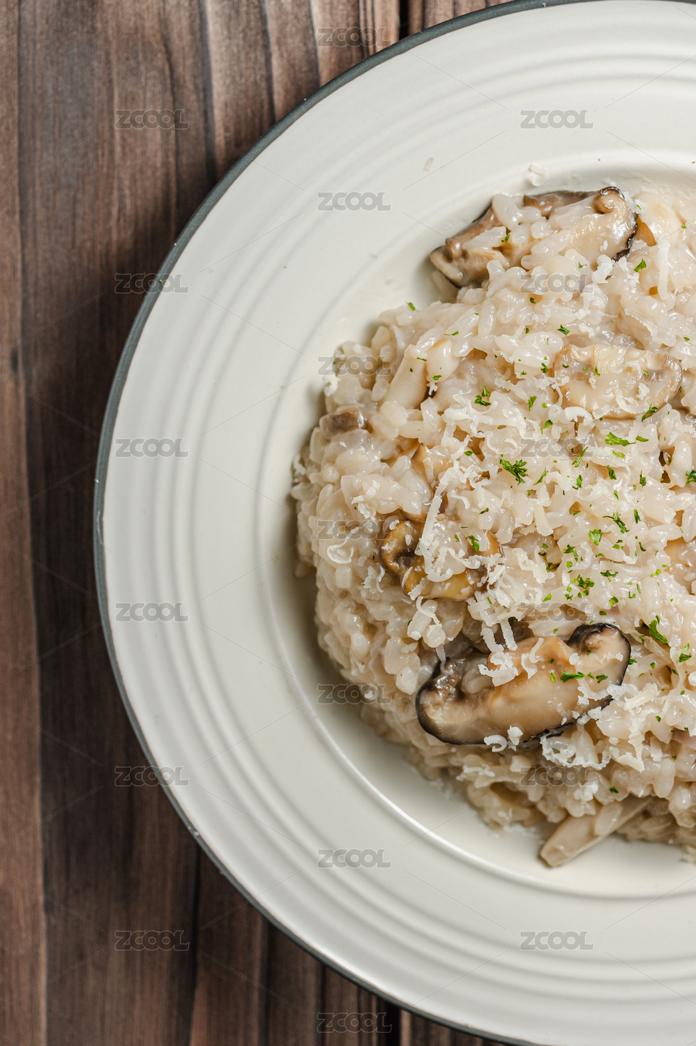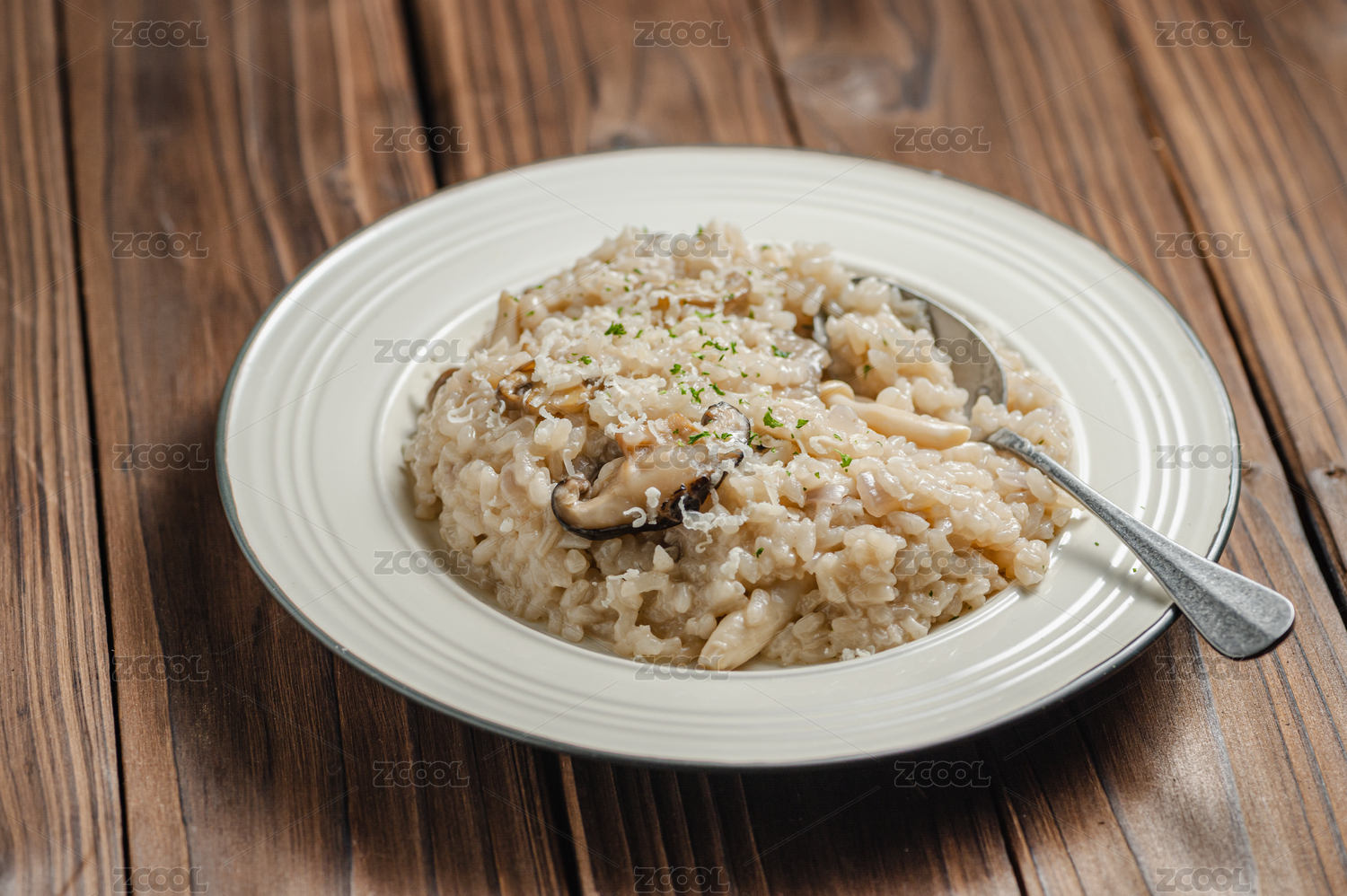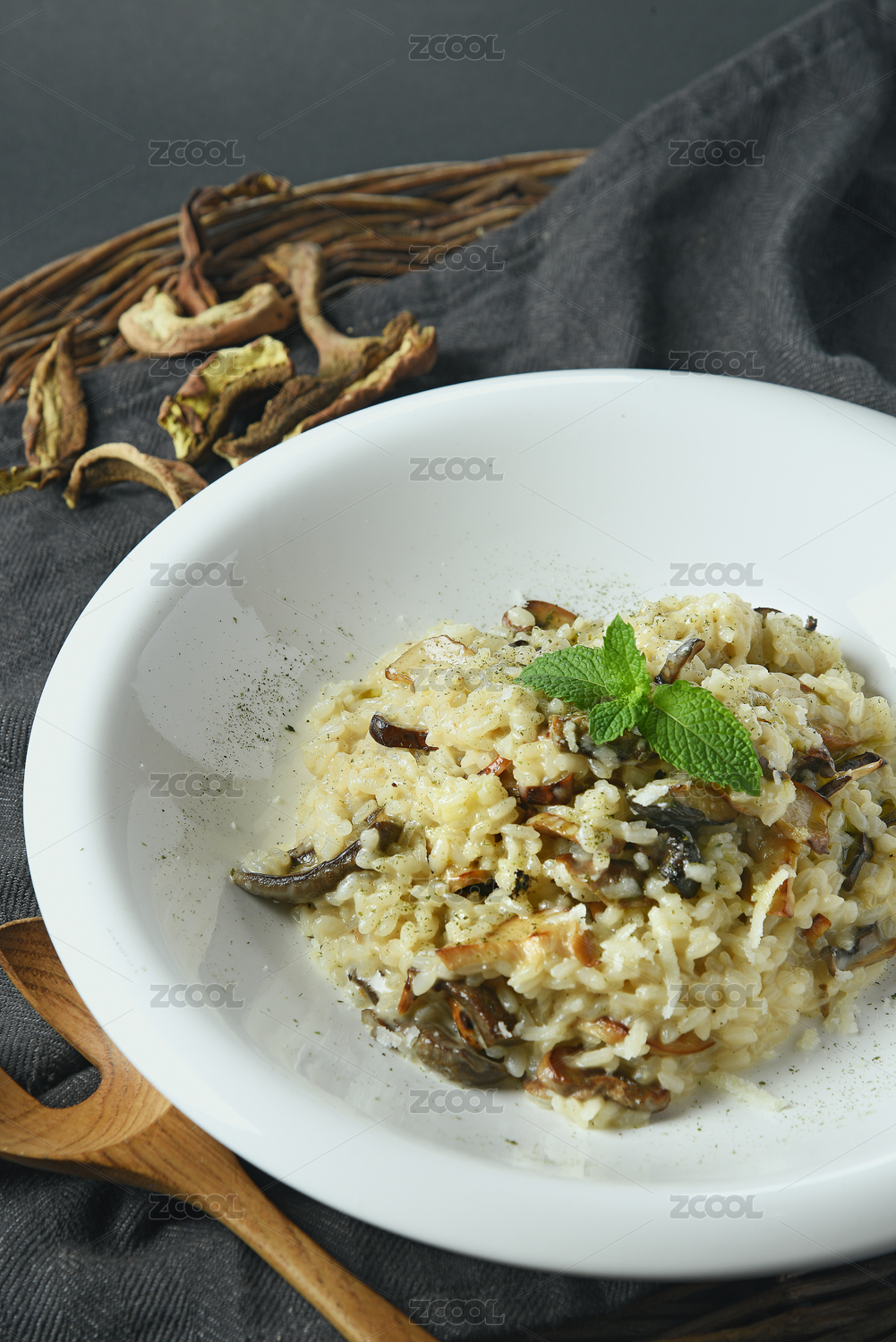 裝在白色陶瓷餐盤里的西式南瓜松子仁燴飯