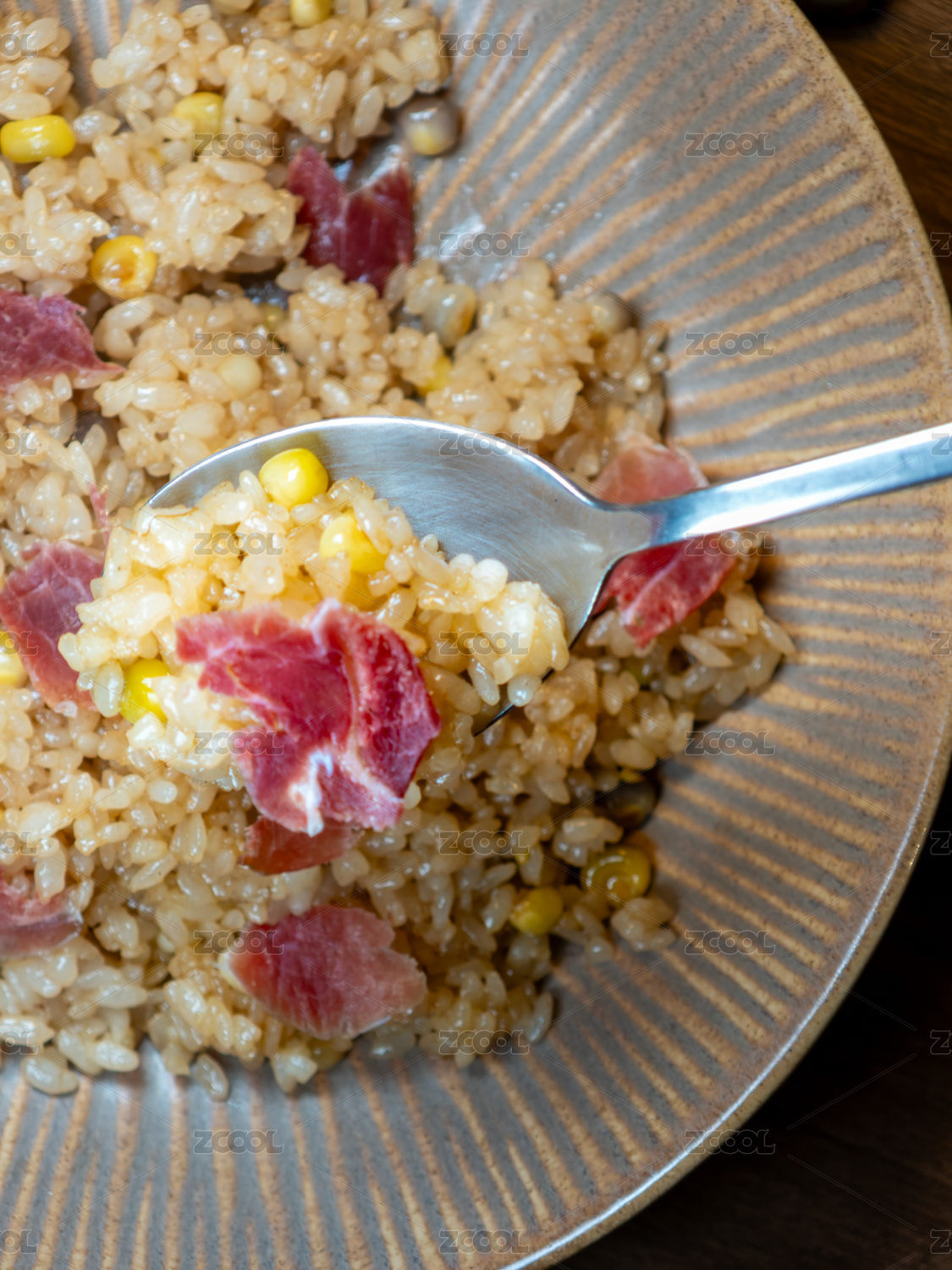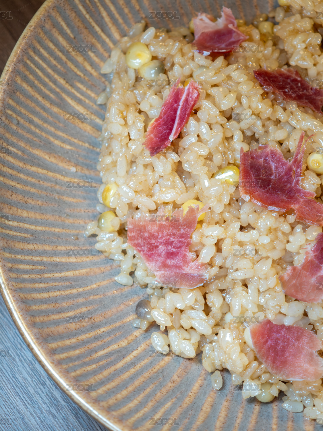 搭配帕爾瑪火腿和甜玉米粒意式燴飯