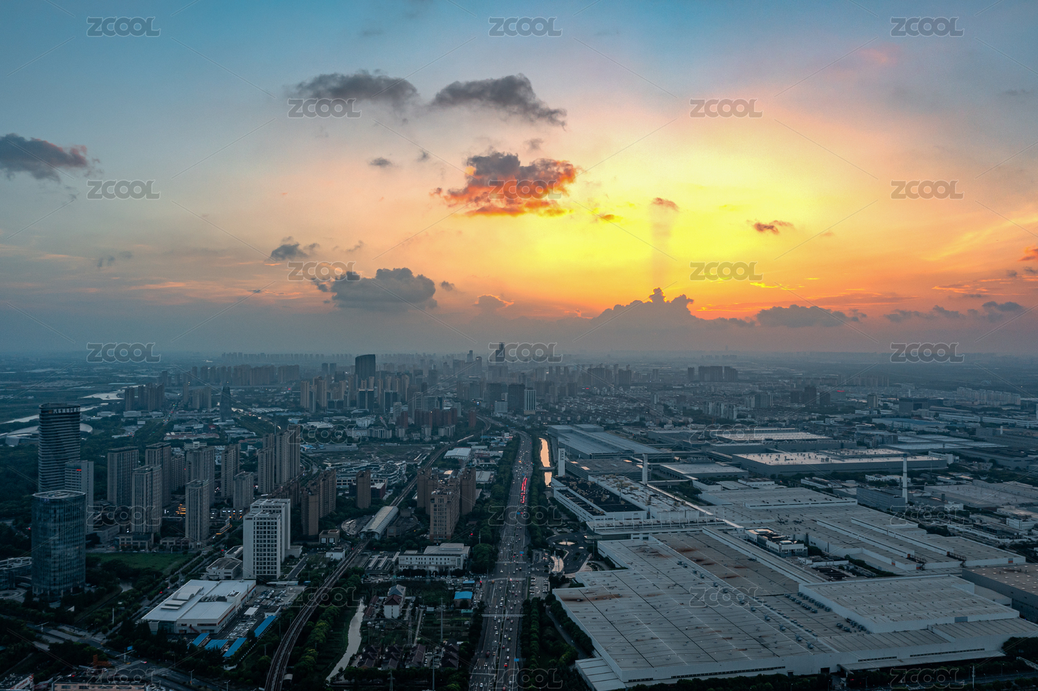 上海嘉定安亭汽車城日落風(fēng)景航拍