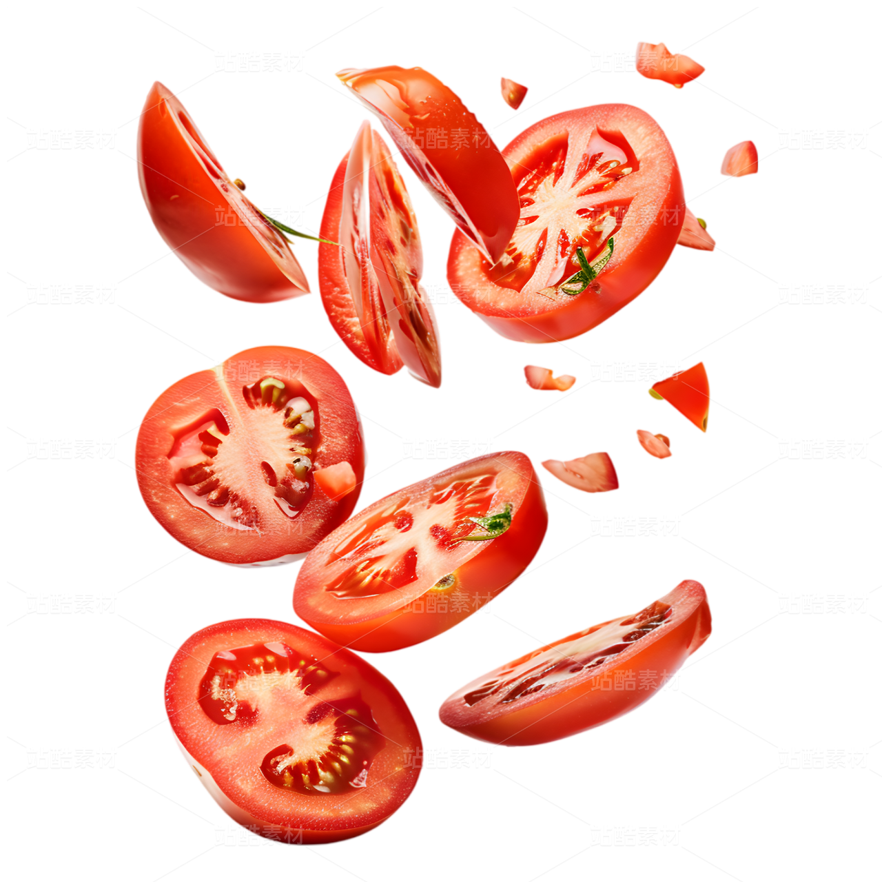 番茄切片空中飛舞畫面
