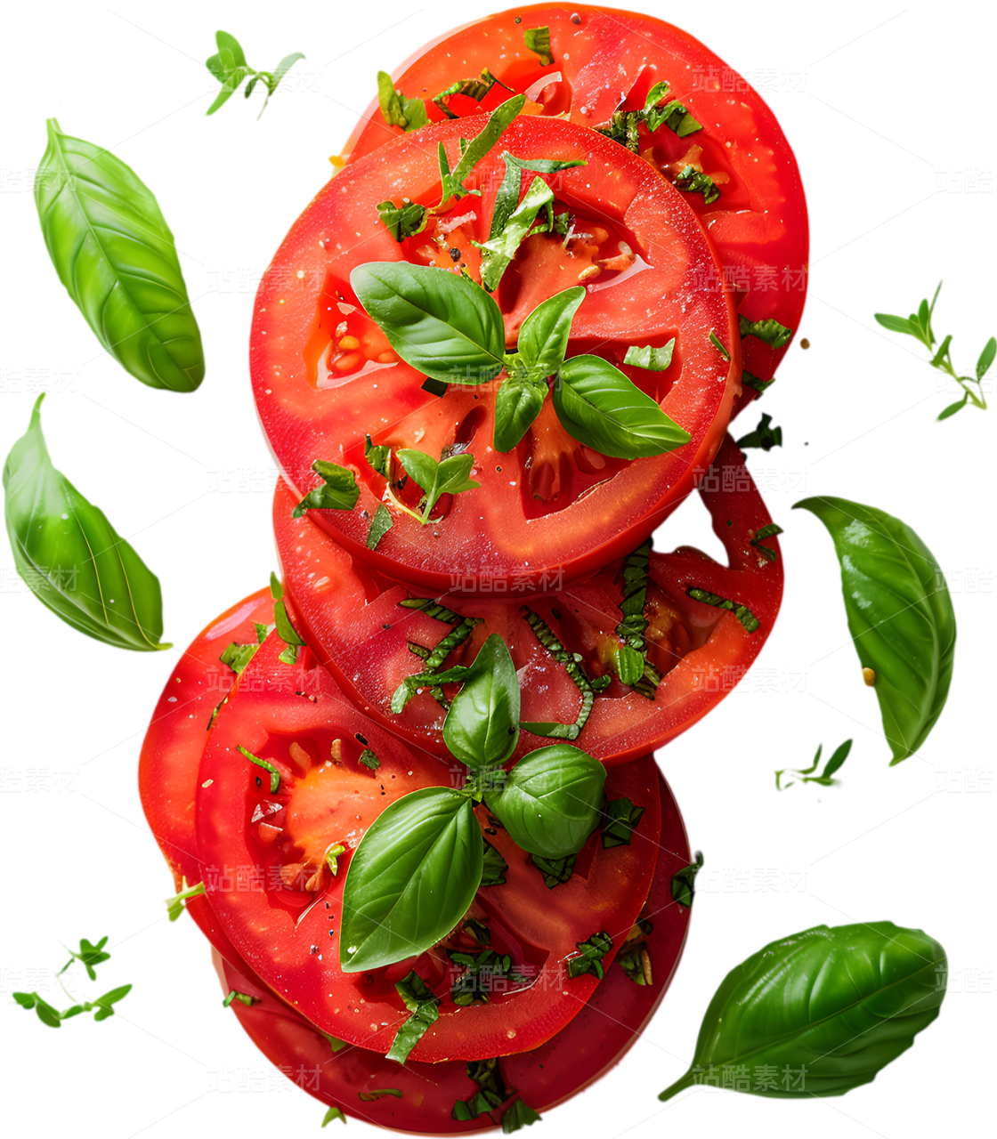新鮮番茄配羅勒葉切片